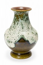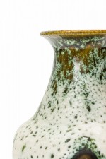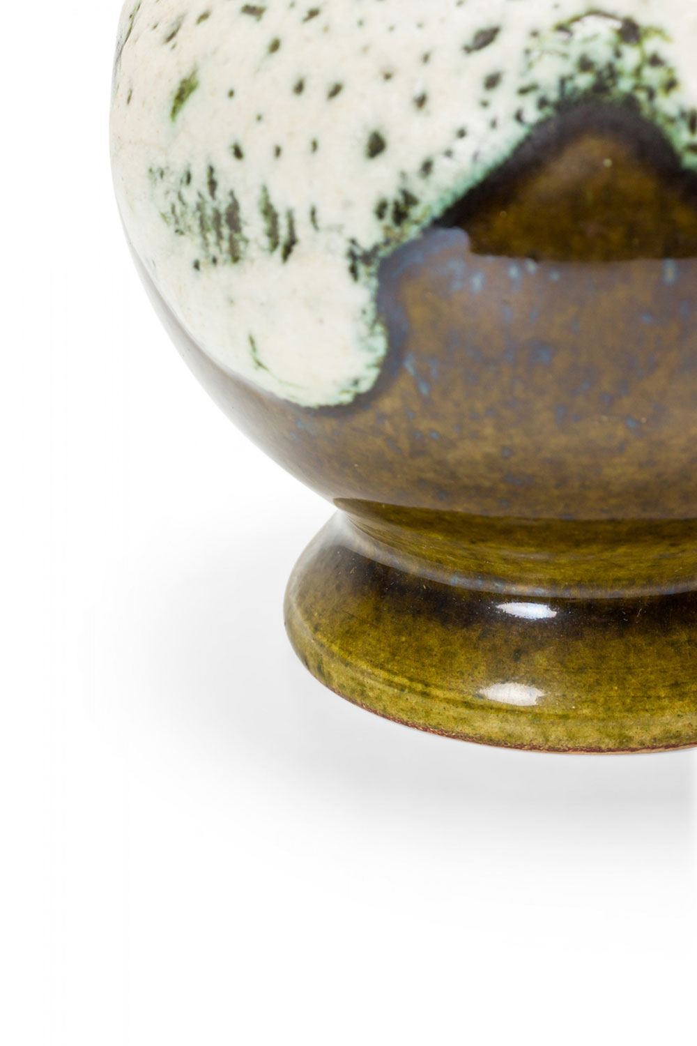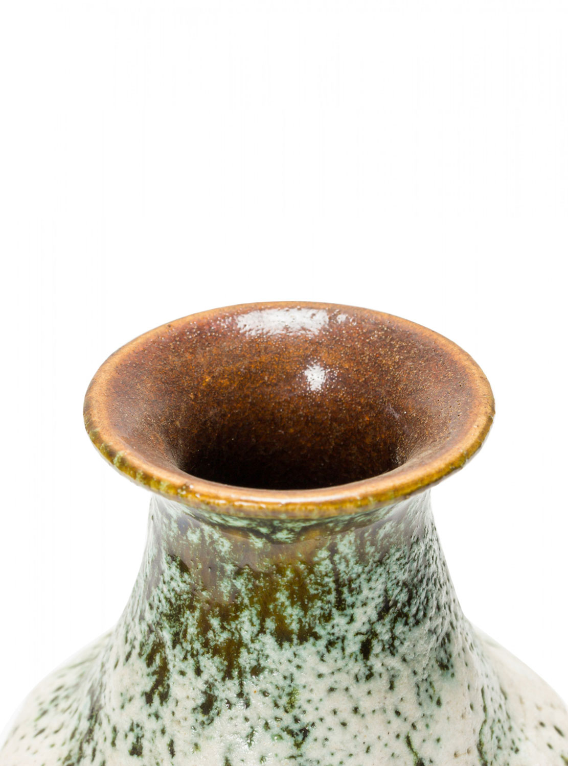 West German Mid-Century White Green and Brown Speckle Glazed Footed Ceramic Vase