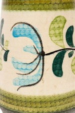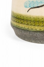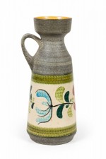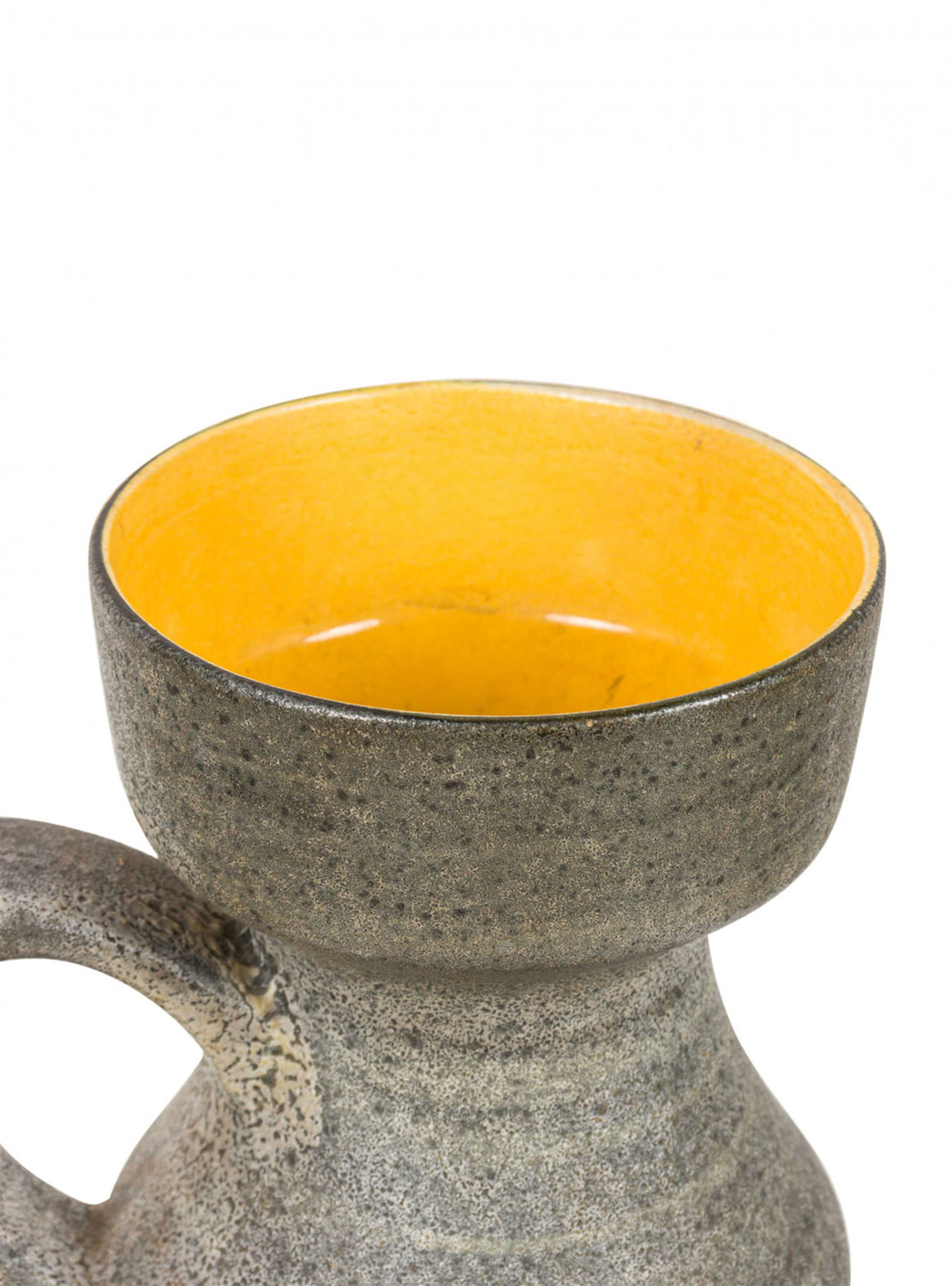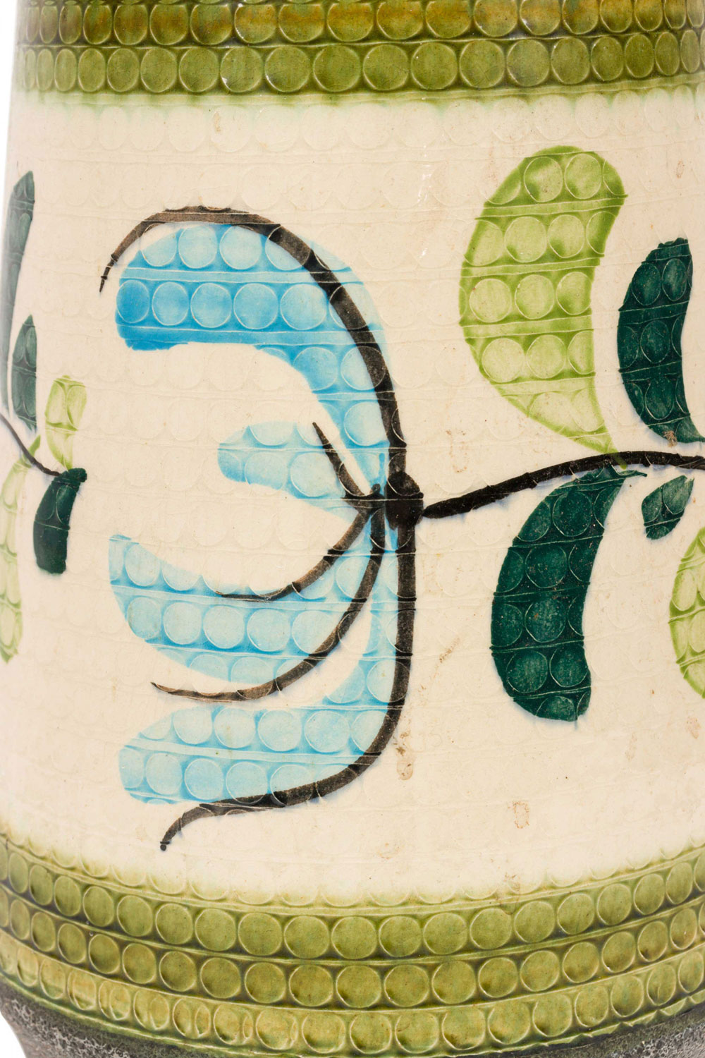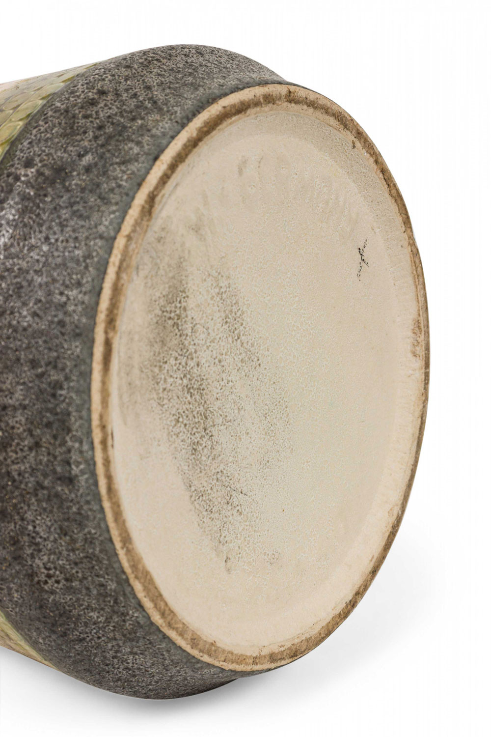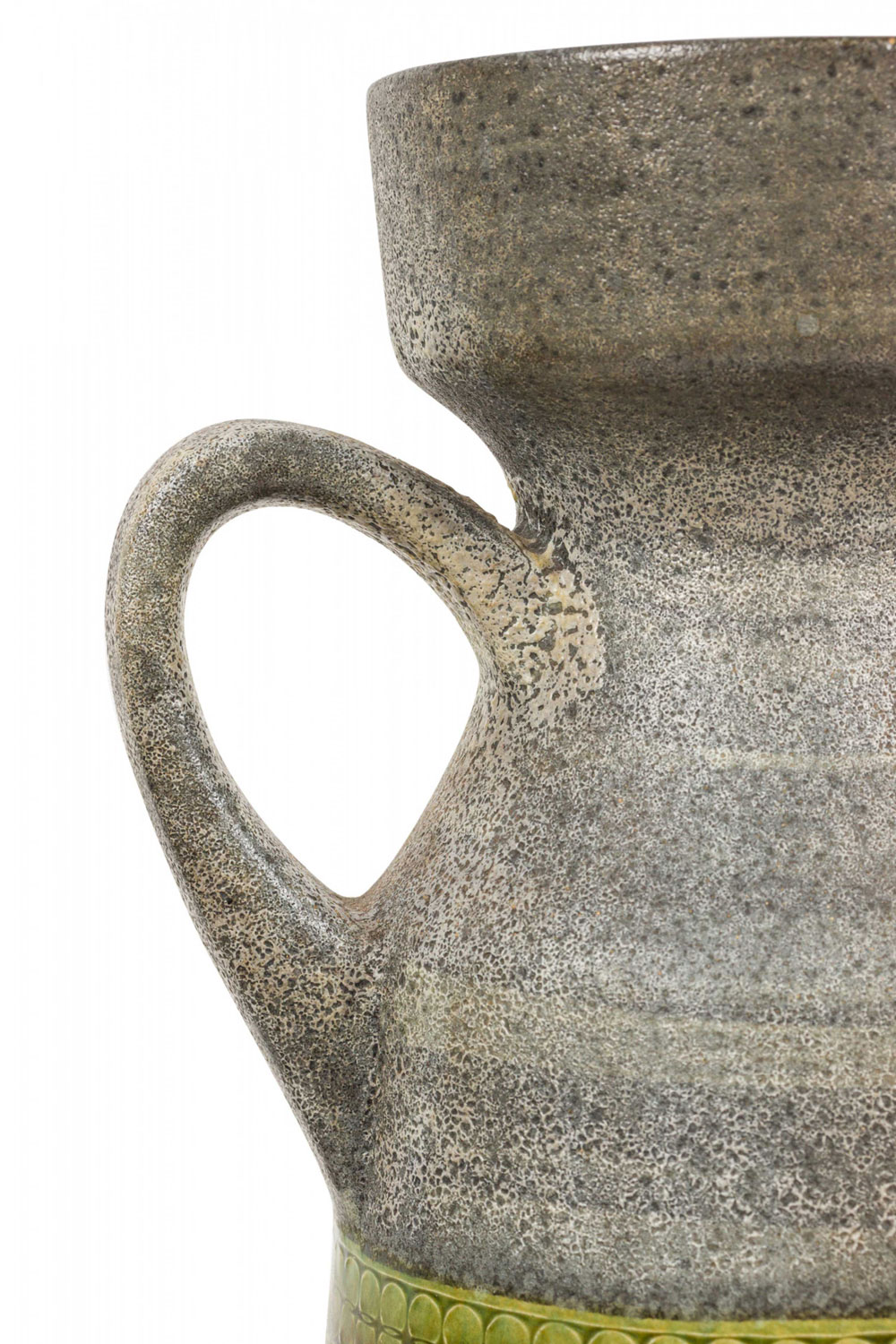 West German Mid-Century Yellow and Green Floral Design Banded Gray Glazed Ceramic Vase