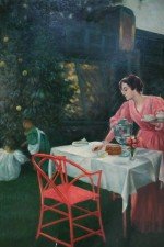 Woman and Children Outdoor Tea Oil Painting on Canvas