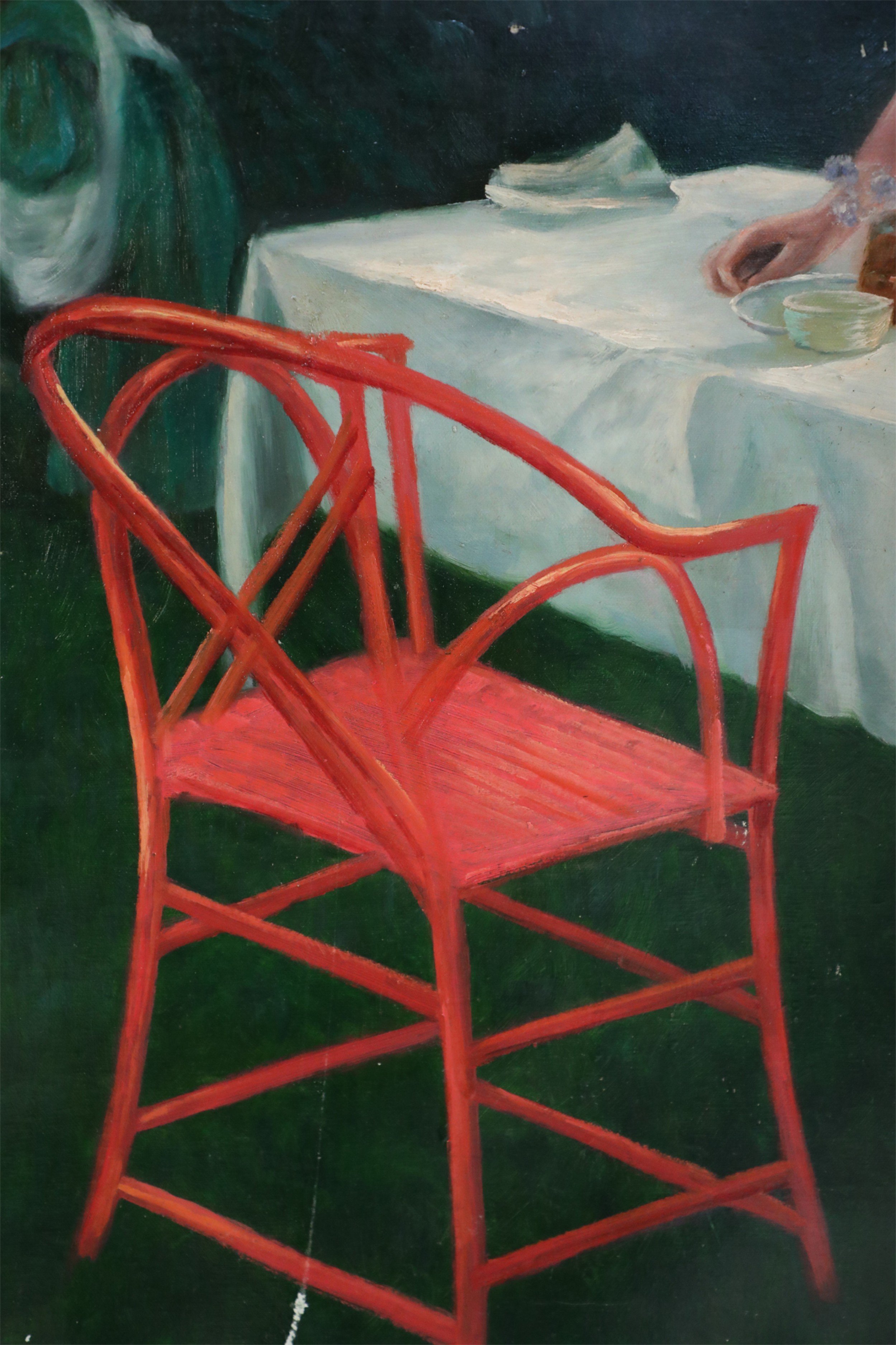 Style: English Materials & Techniques: Canvas Category: Cleared Art Condition: Paint flaking in several places. Good; Wear consistent with age and use