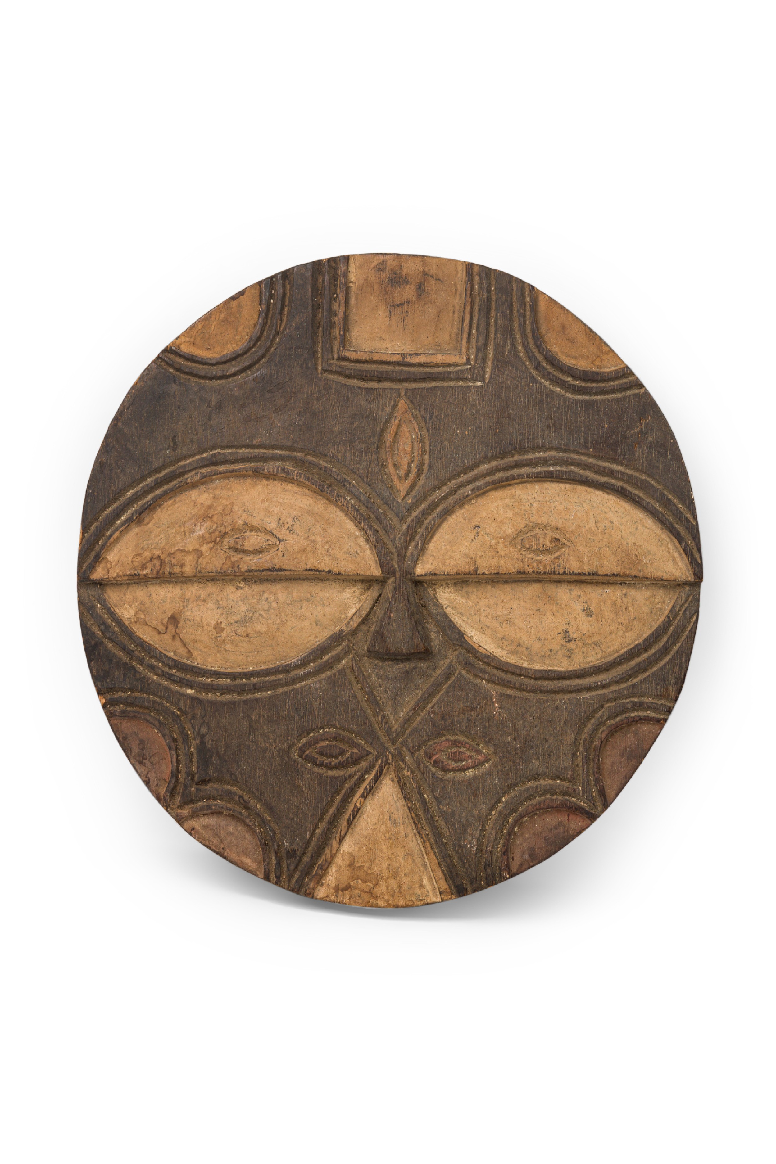Africa D.R. Congo Late 20th Century Carved & Painted Teke Circular Disc Mask Plaque