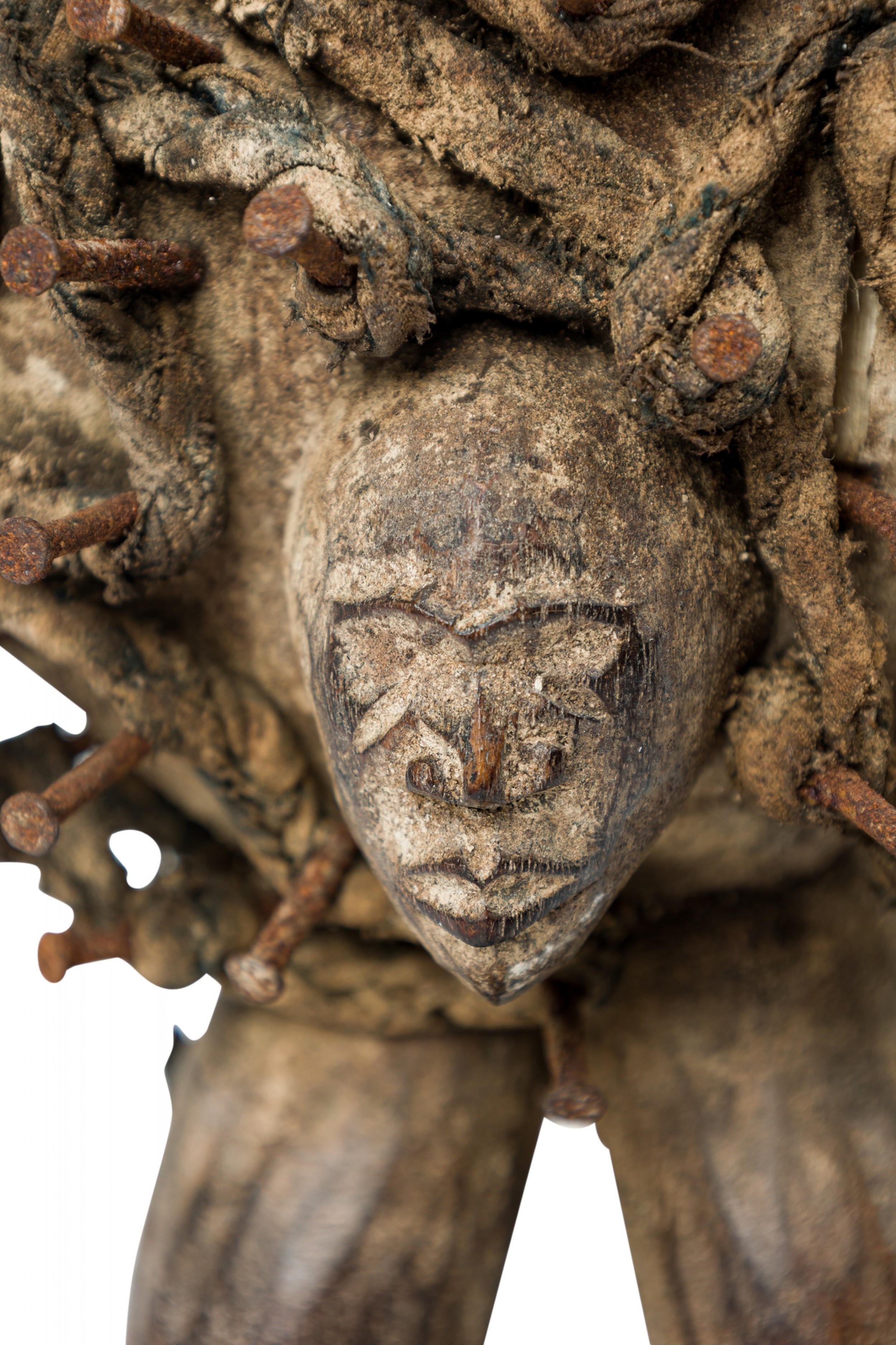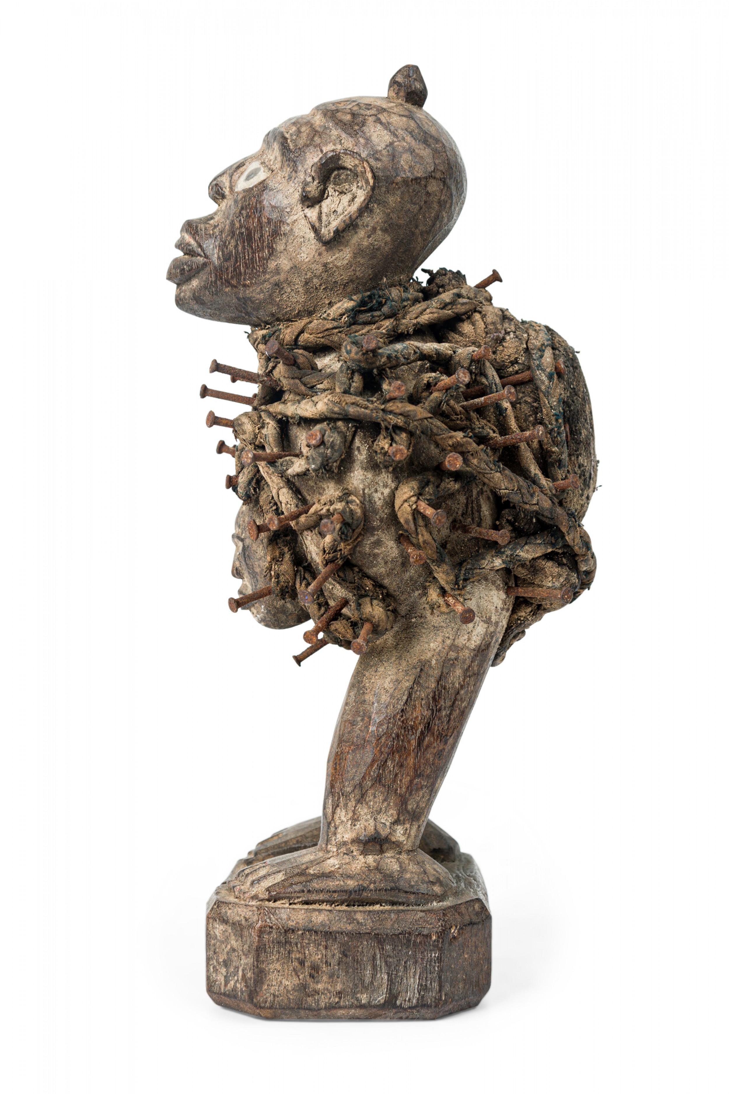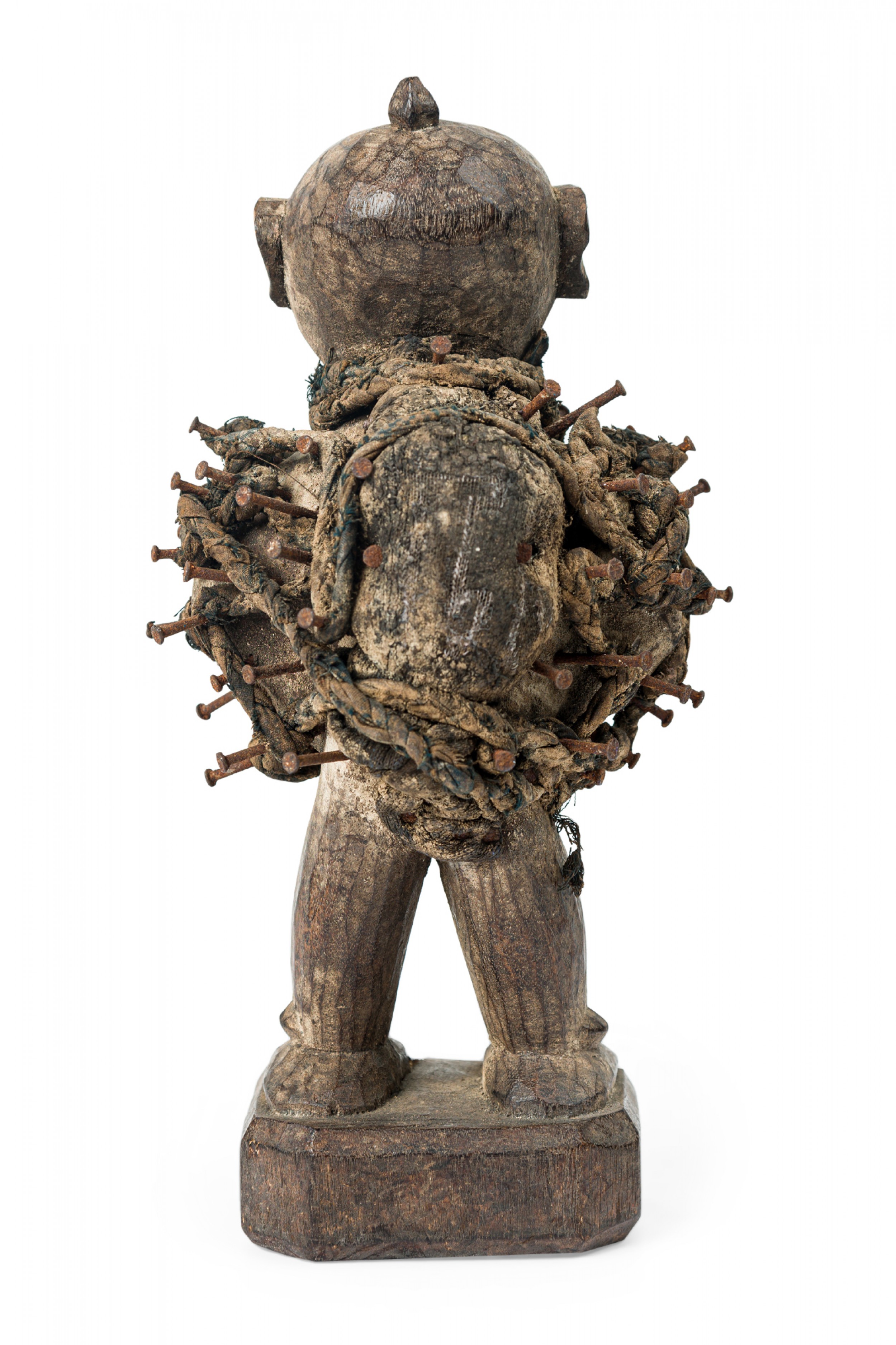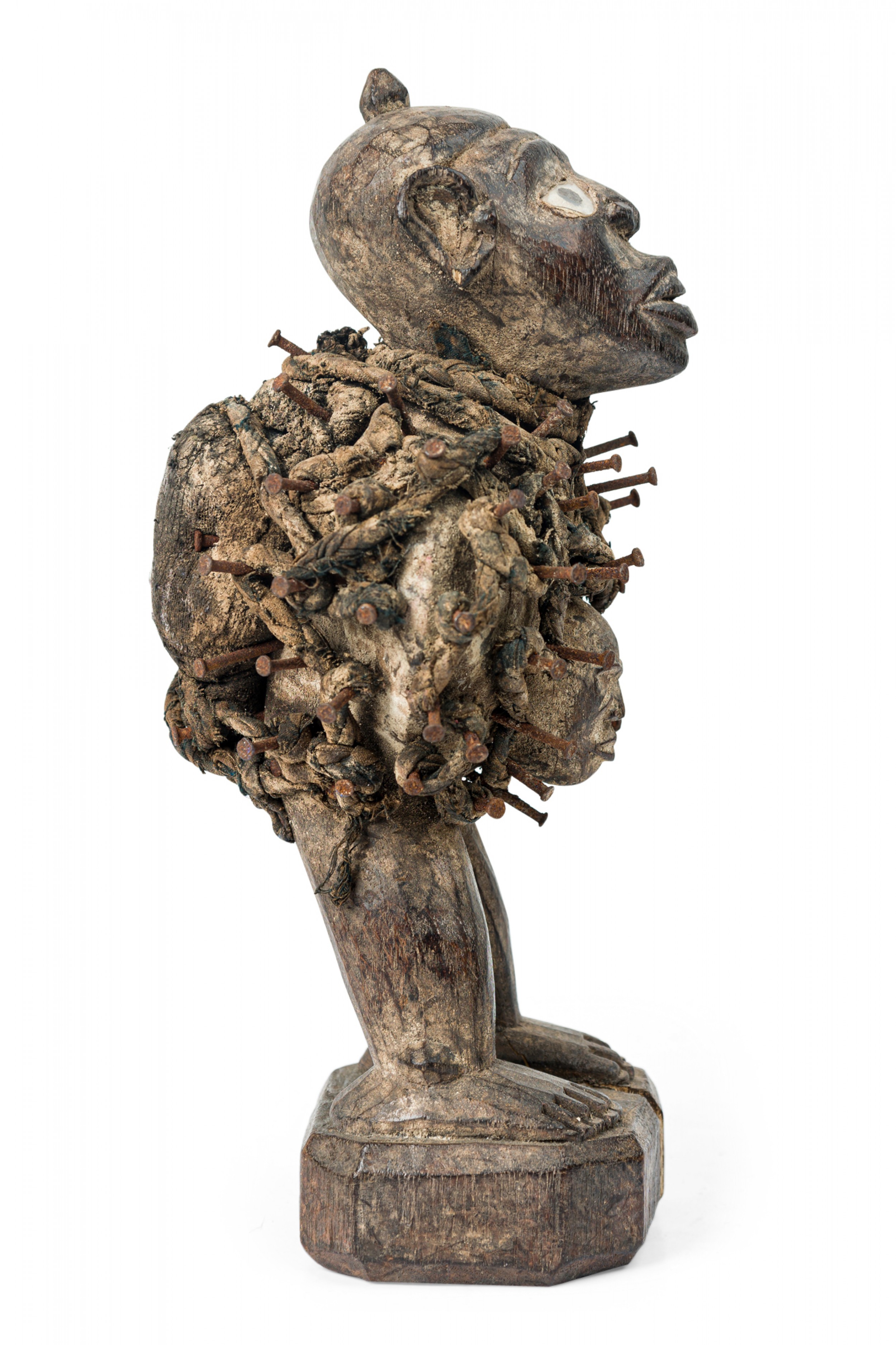 African D.R. Congo 20th Century Carved Wood Nkisi Male Nail Fetish Figure