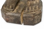 Style: Misc. Style Materials & Techniques: Carved, glass, metal, painted, rope, wood Category: Cleared Sculpture Condition: Split up the middle bottom front but stable, wear to finish. Good; Wear consistent with age and use