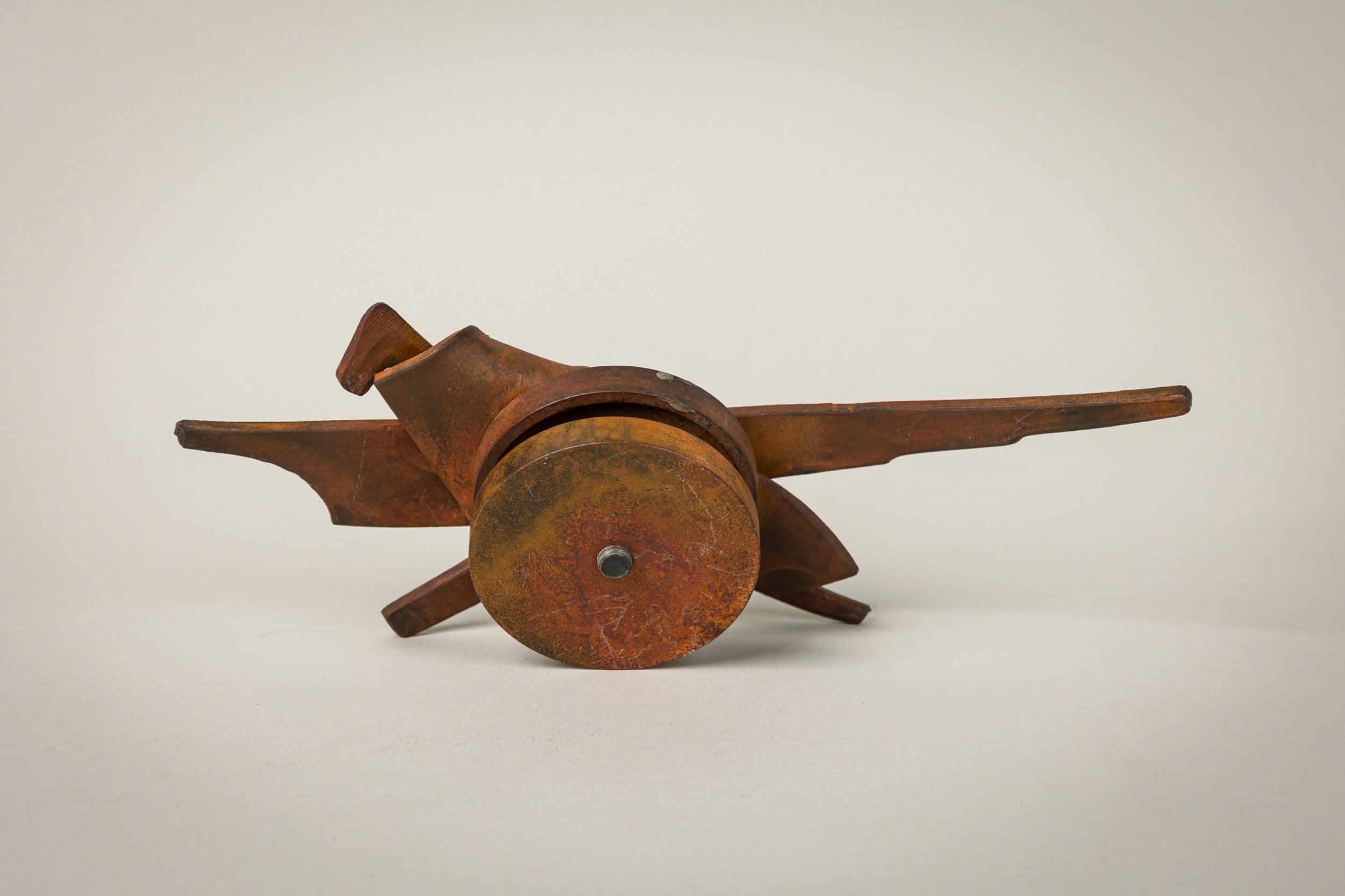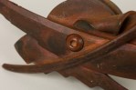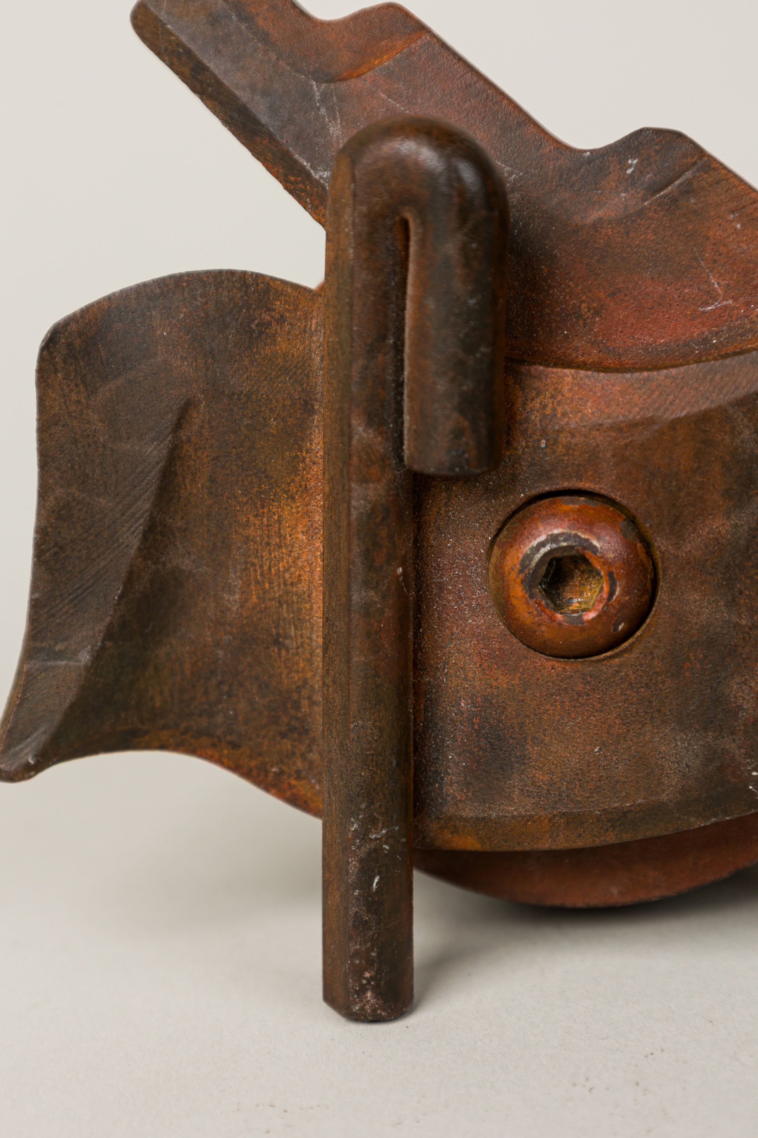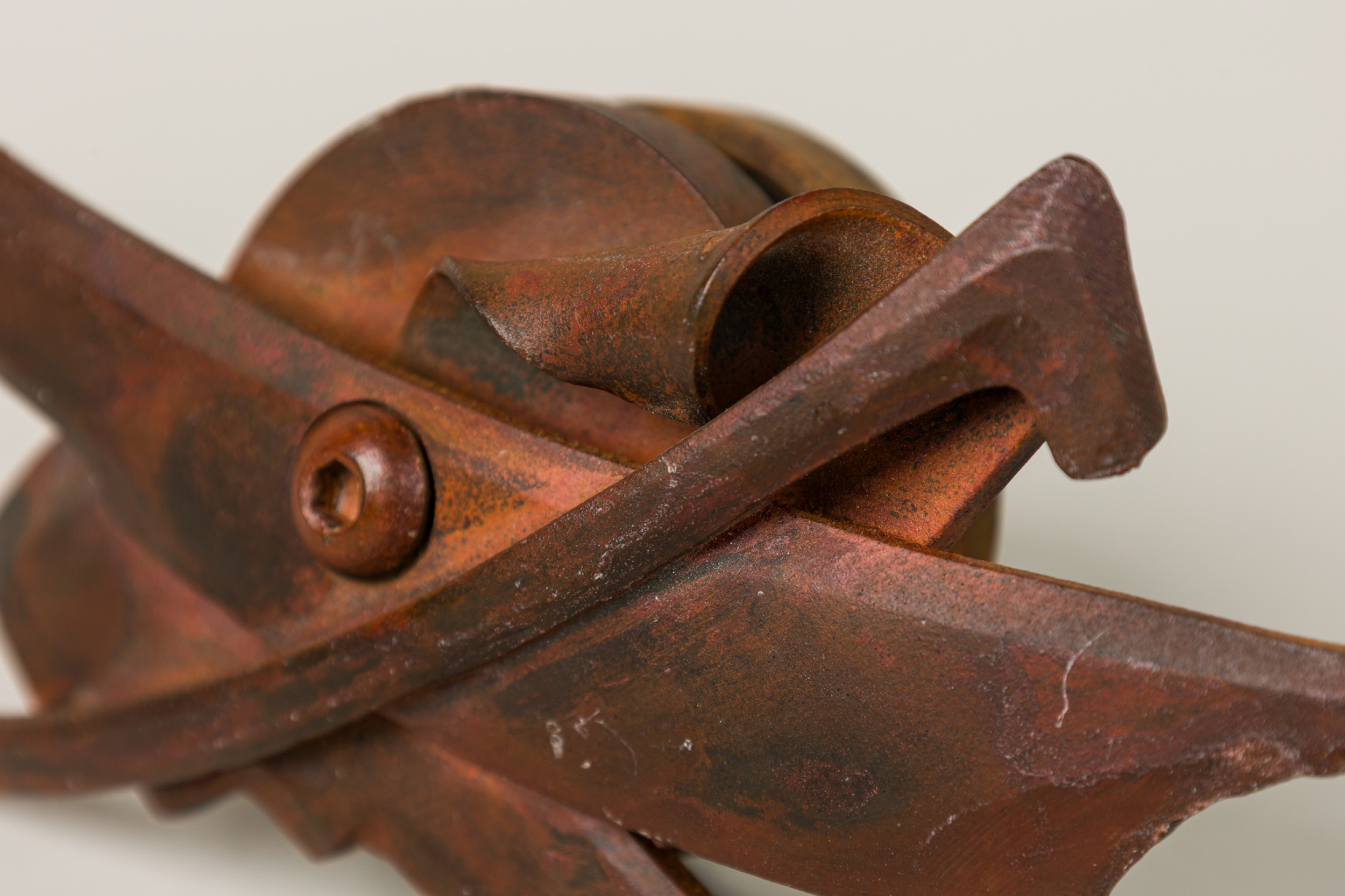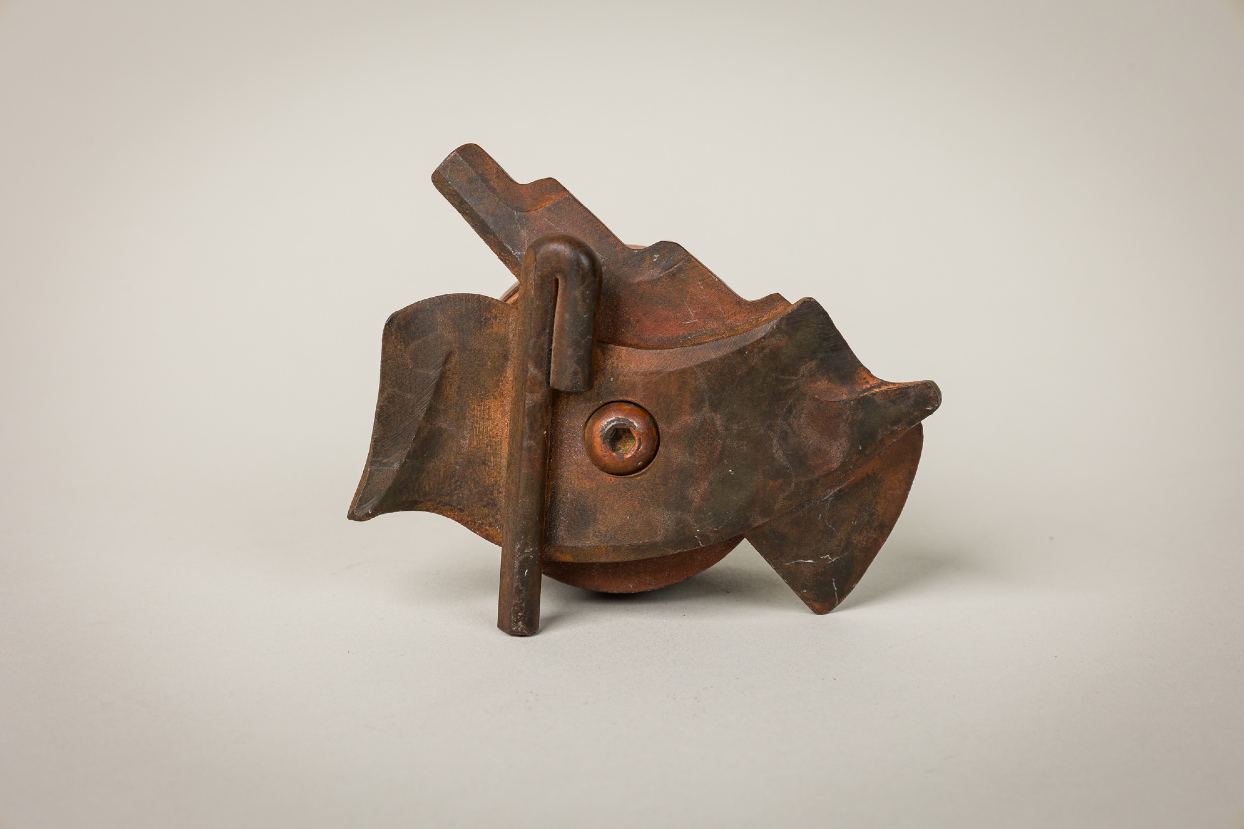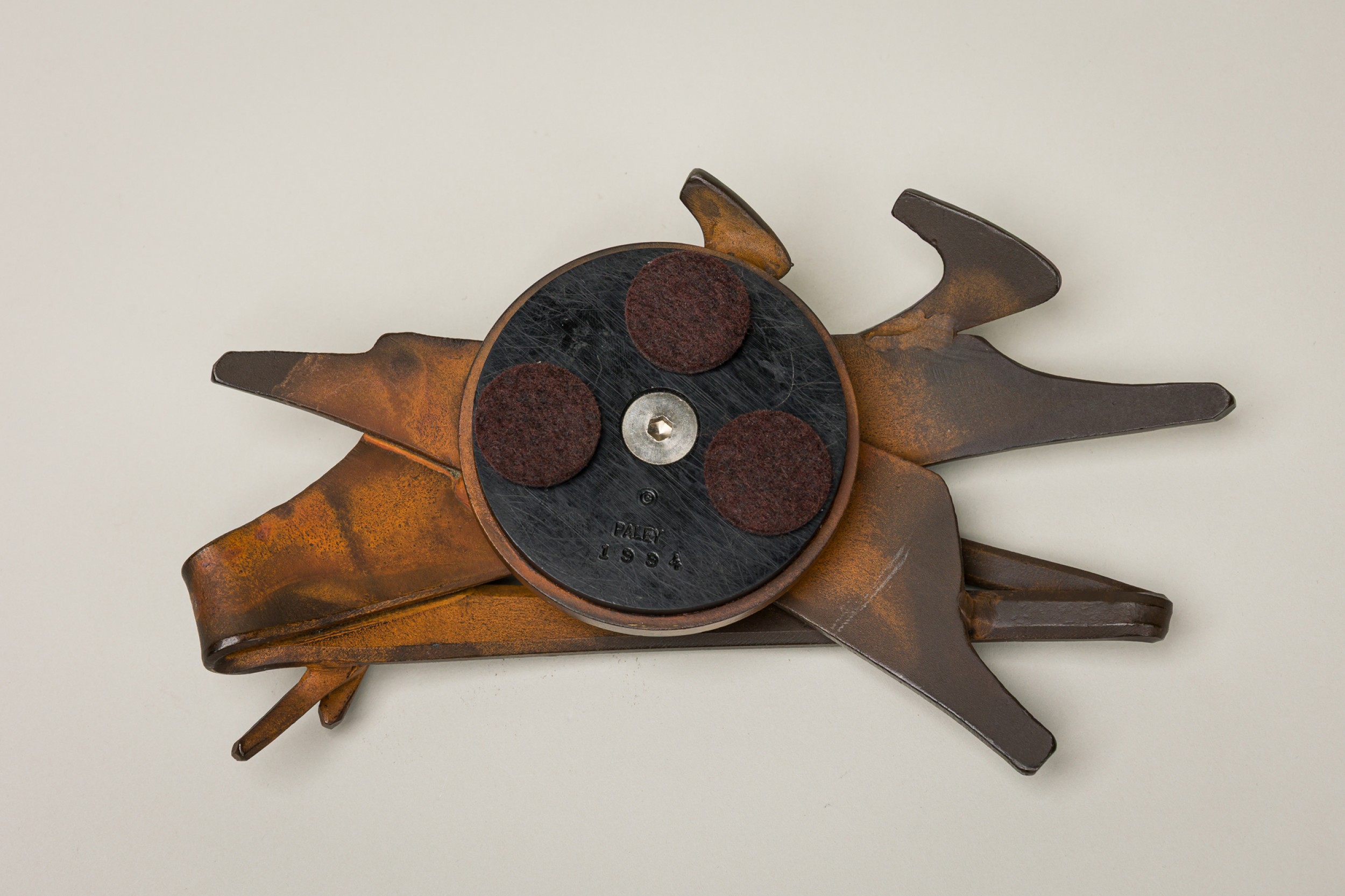 3 American Post-War forged and fabricated steel double sided knobs / paper weightS with controlled rust patina. marked (PALEY, 1994) (PRICED EACH)