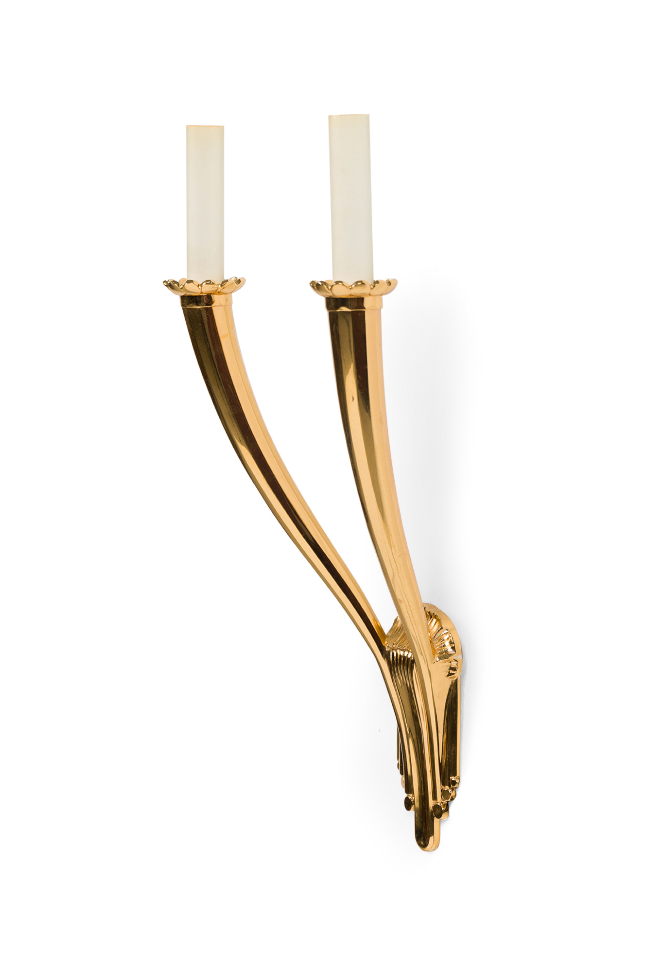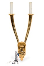 PAIR of French Art-Deco style brass plated wishbone shaped 2-arm wall sconces (in the style of Leleu) (PRICED AS PAIR).