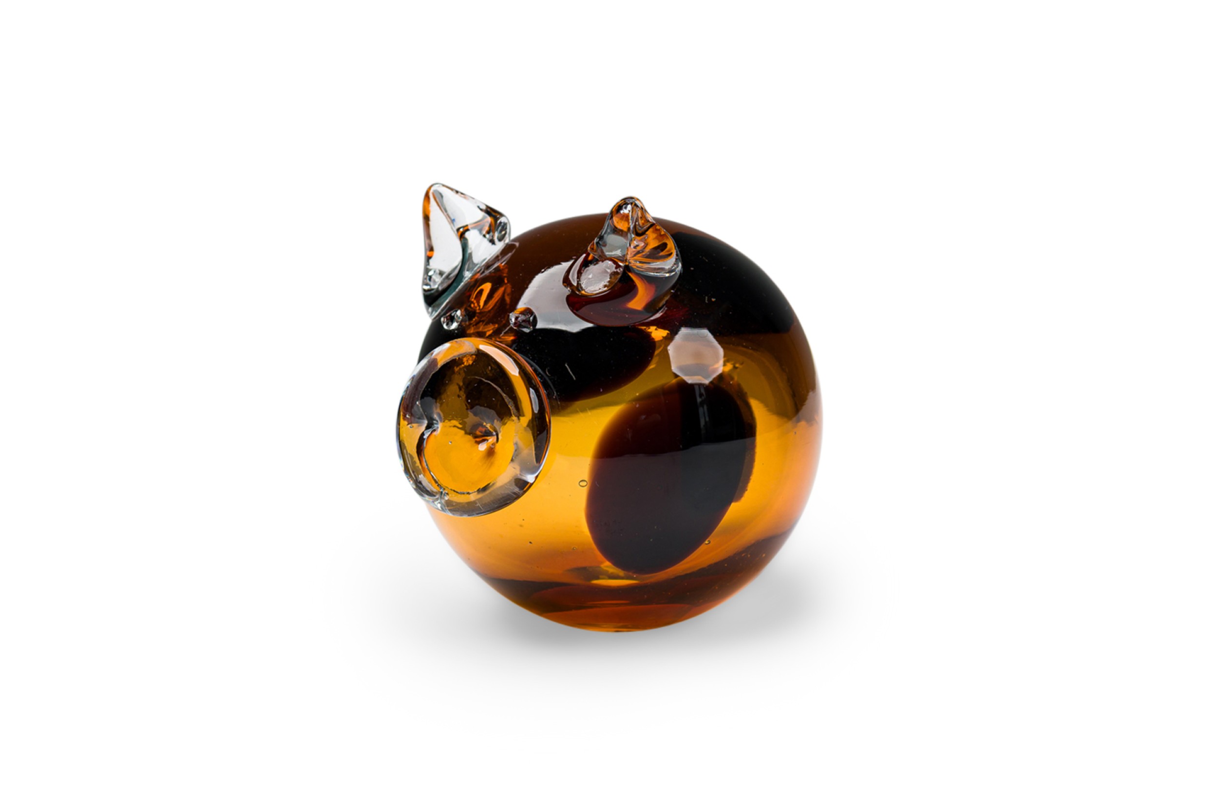 American Contemporary amber and clear art glass pig figurine with a hollow body
