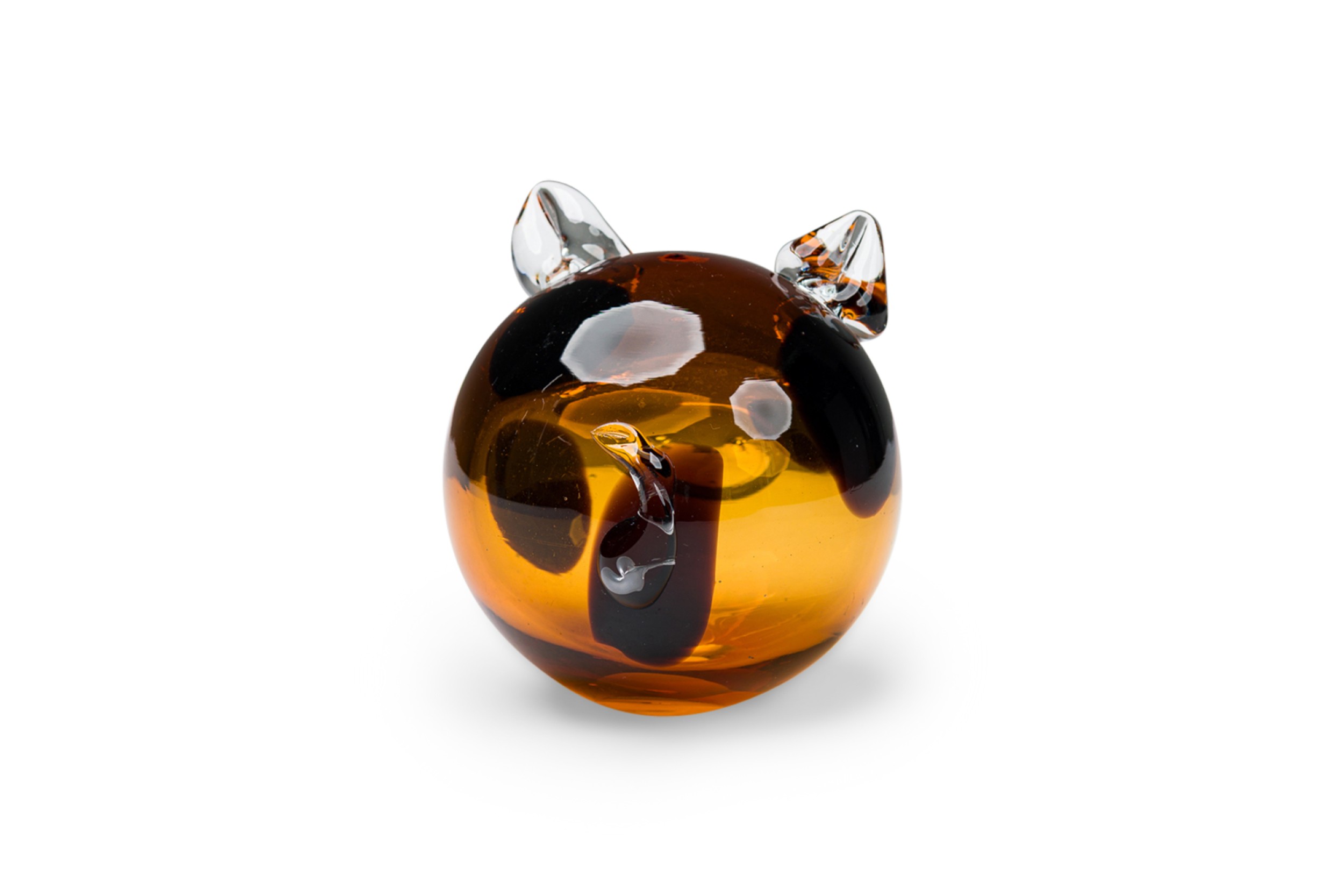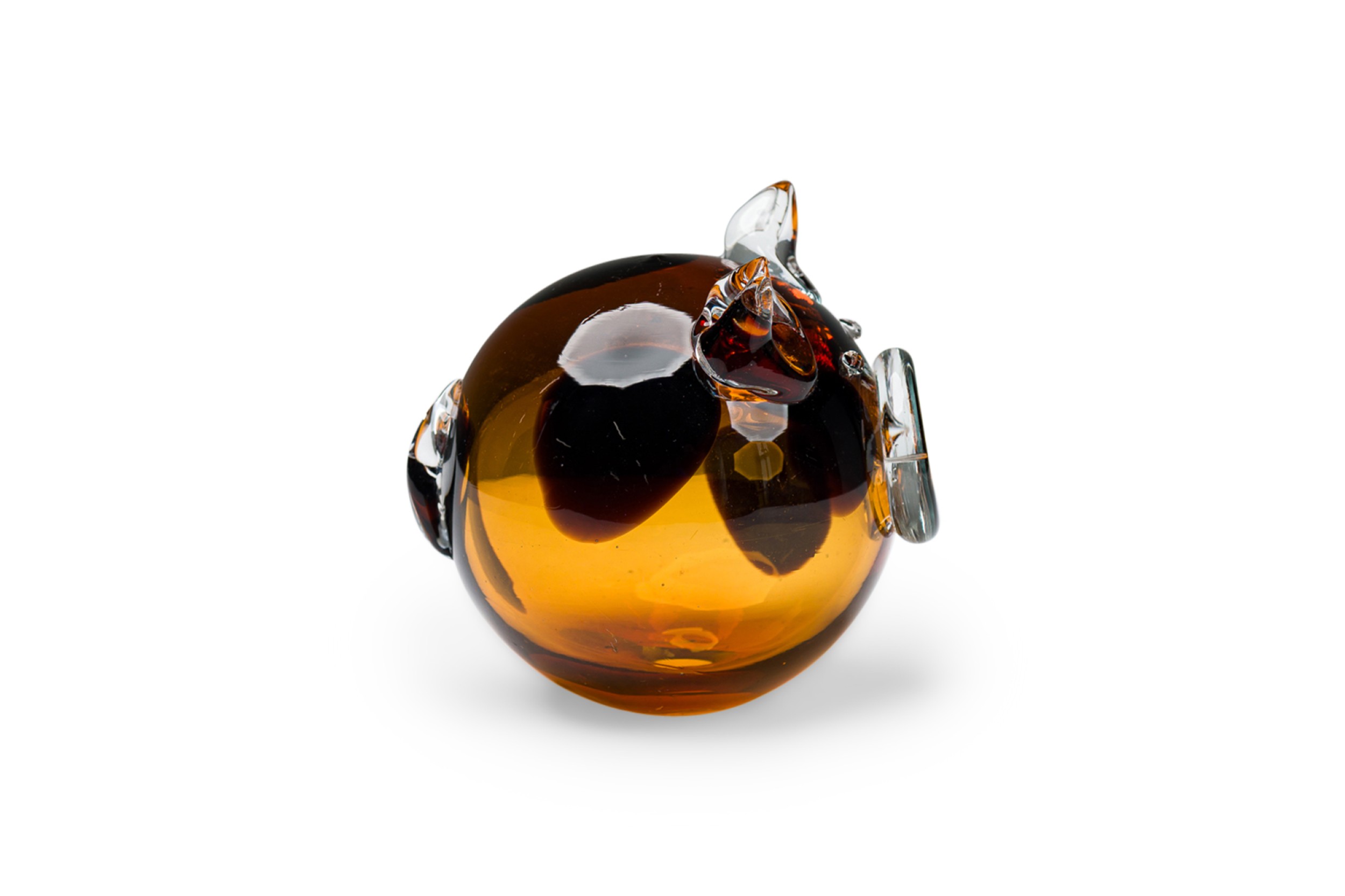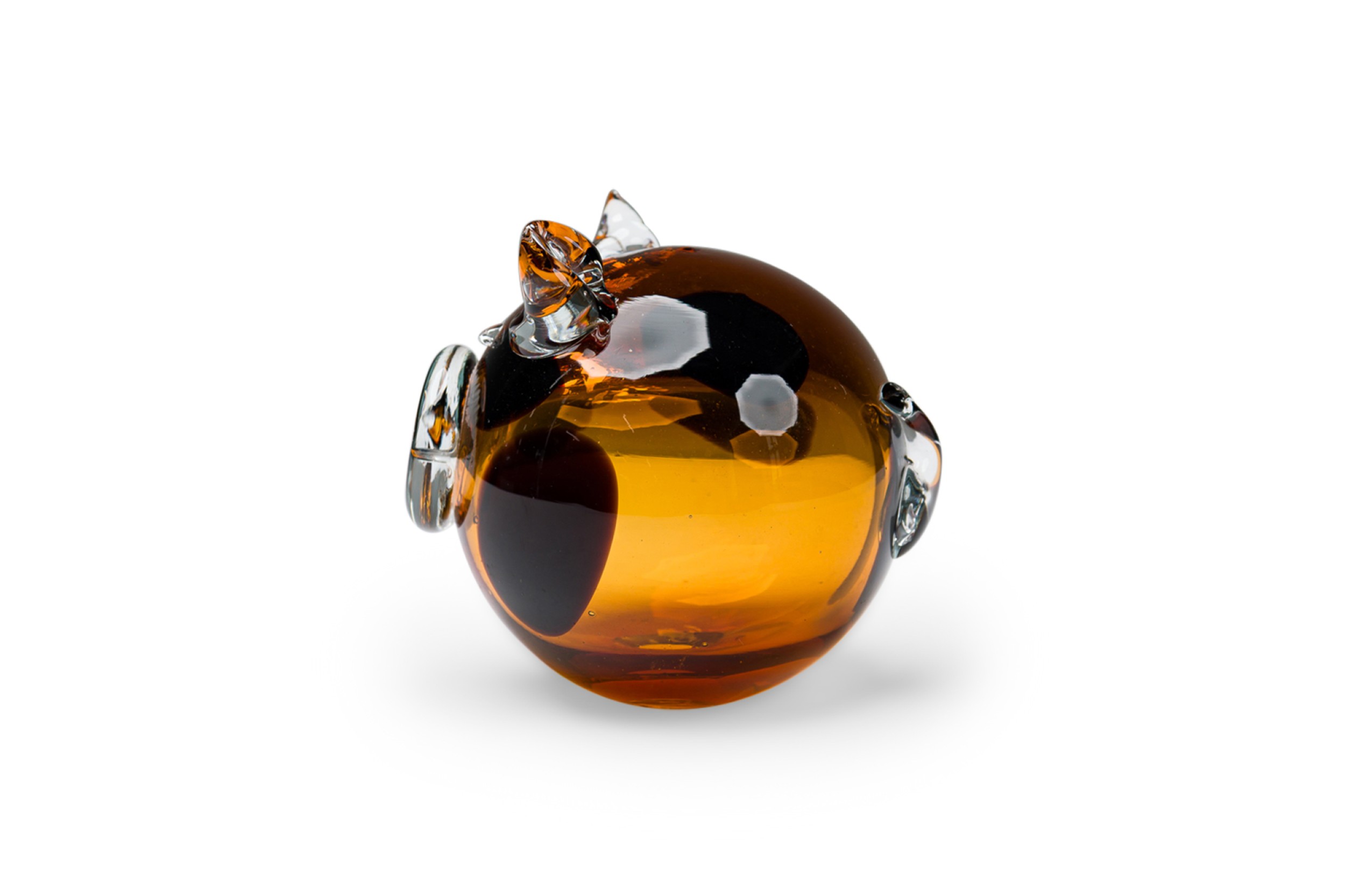 American Contemporary amber and clear art glass pig figurine with a hollow body.