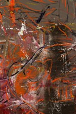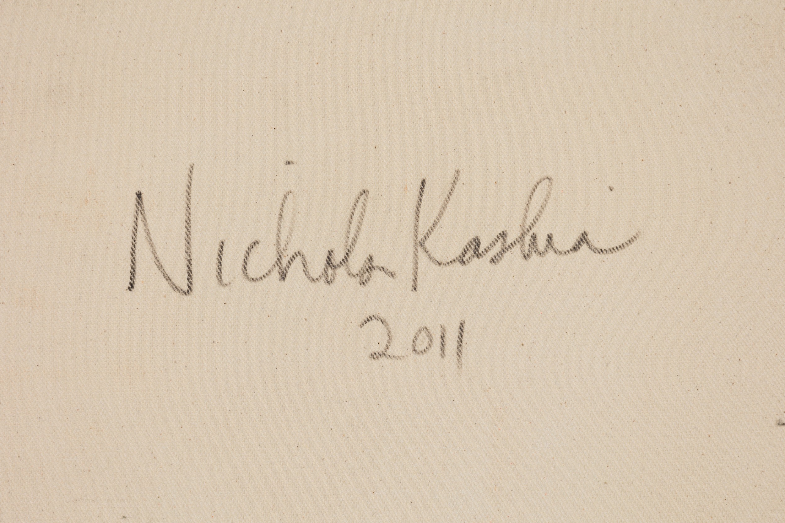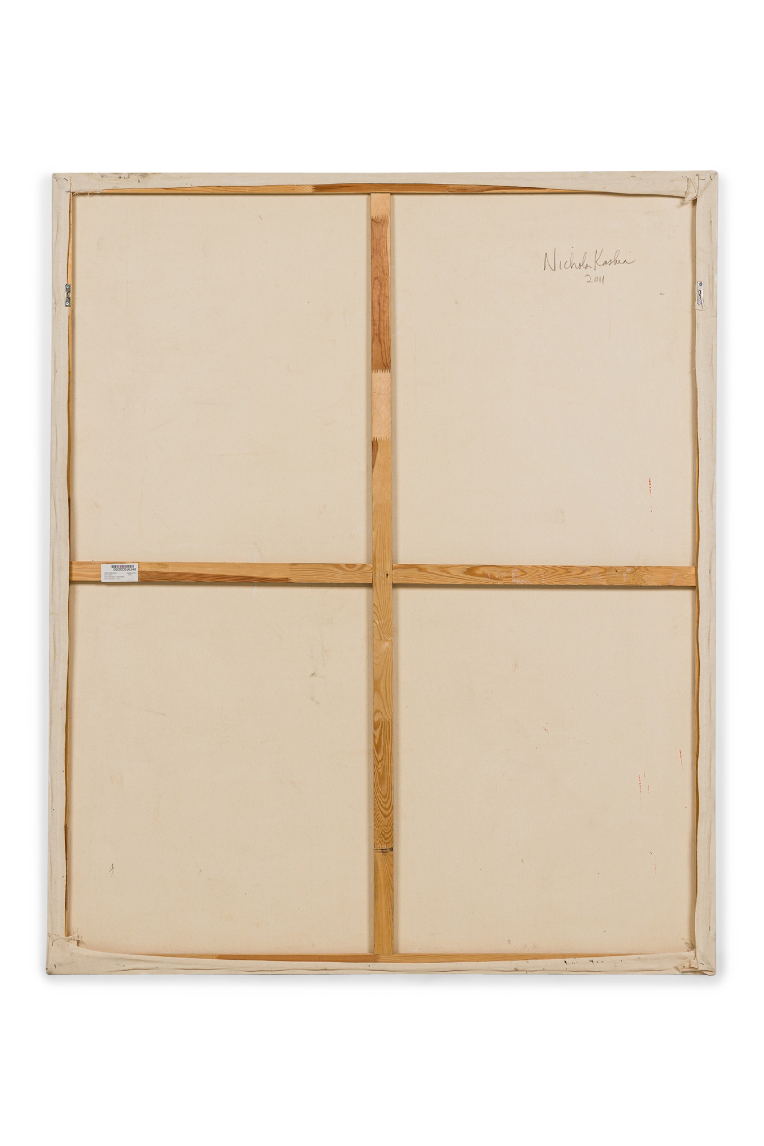American Contemporary large dynamic painting in a multicolor palette with a tension between gestural strokes and automatic strokes contributing to a dense dynamic work taking street and graffiti art onto a canvas (signed verso: NICHOLAS KASHIAN)