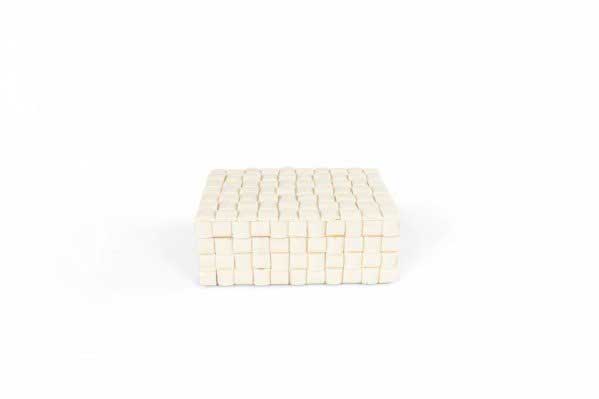 American Contemporary rectangle silver fabric box with a paisley pattern.