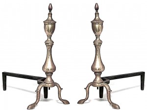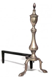 PAIR of American Country-style (19th Century) brass andirons with urn top. (PRICED AS PAIR)
