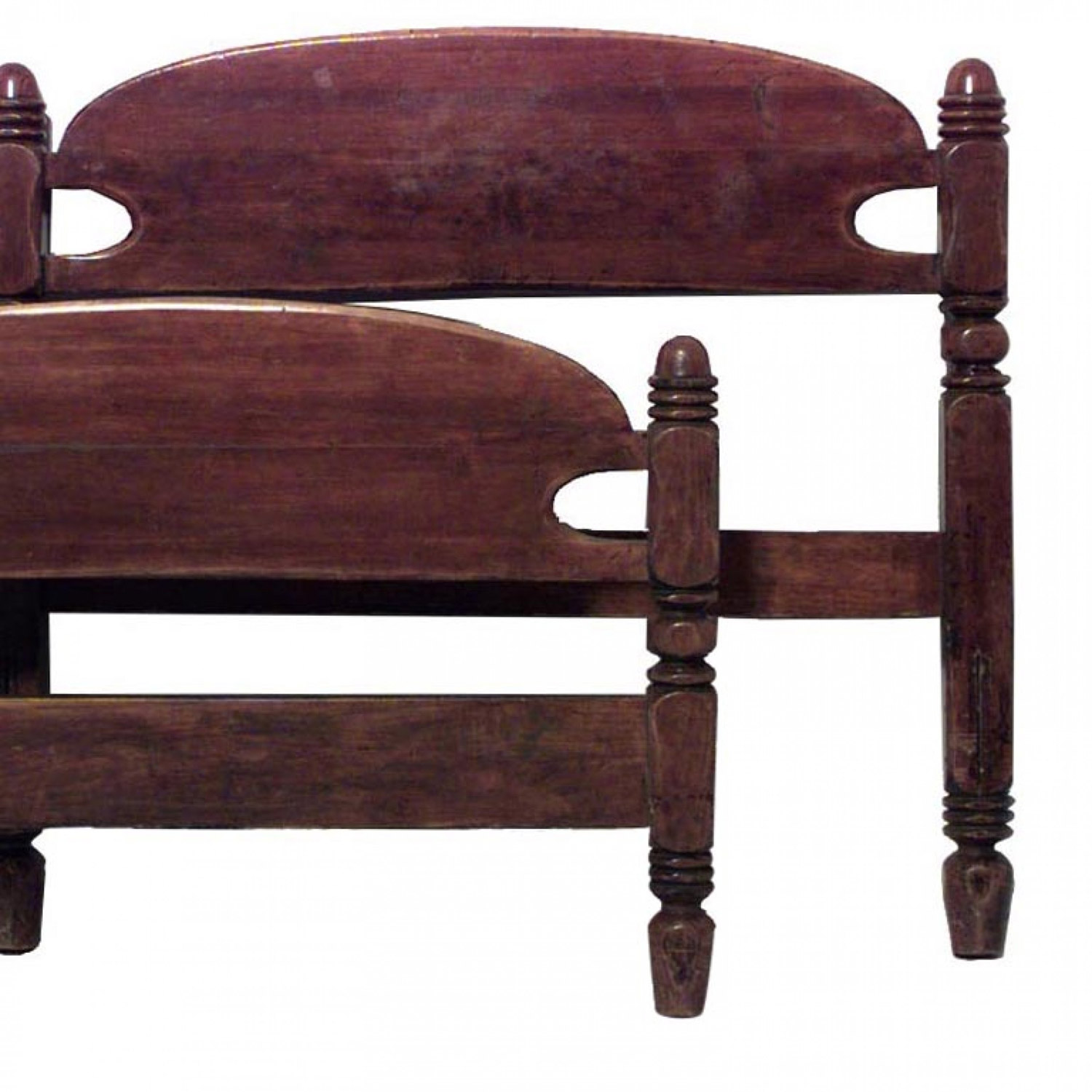 American Country-style (19th Century) cherrywood twin size bed with rounded top (includes:headboard, footboard, and rails). (Slightly irregular size, check measurements)..