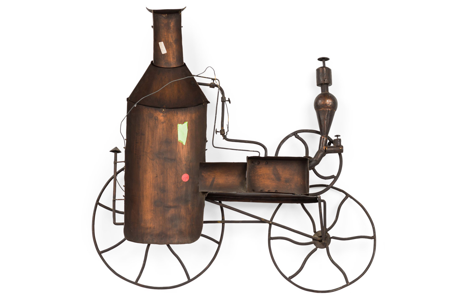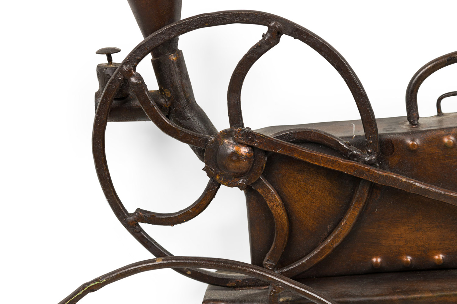 American Country style (20th Century) copper steam engine wall plaque with 3 wheels.