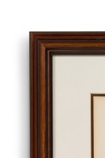 American Western style genre scene print of a group of Indians oh horses titlled: "War Council" in a mahogany frame and white mat (SIGNED: McCAIN) (similar items: NWL7281,, 7282A, 7284, 7285)