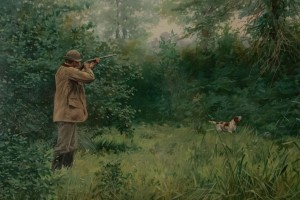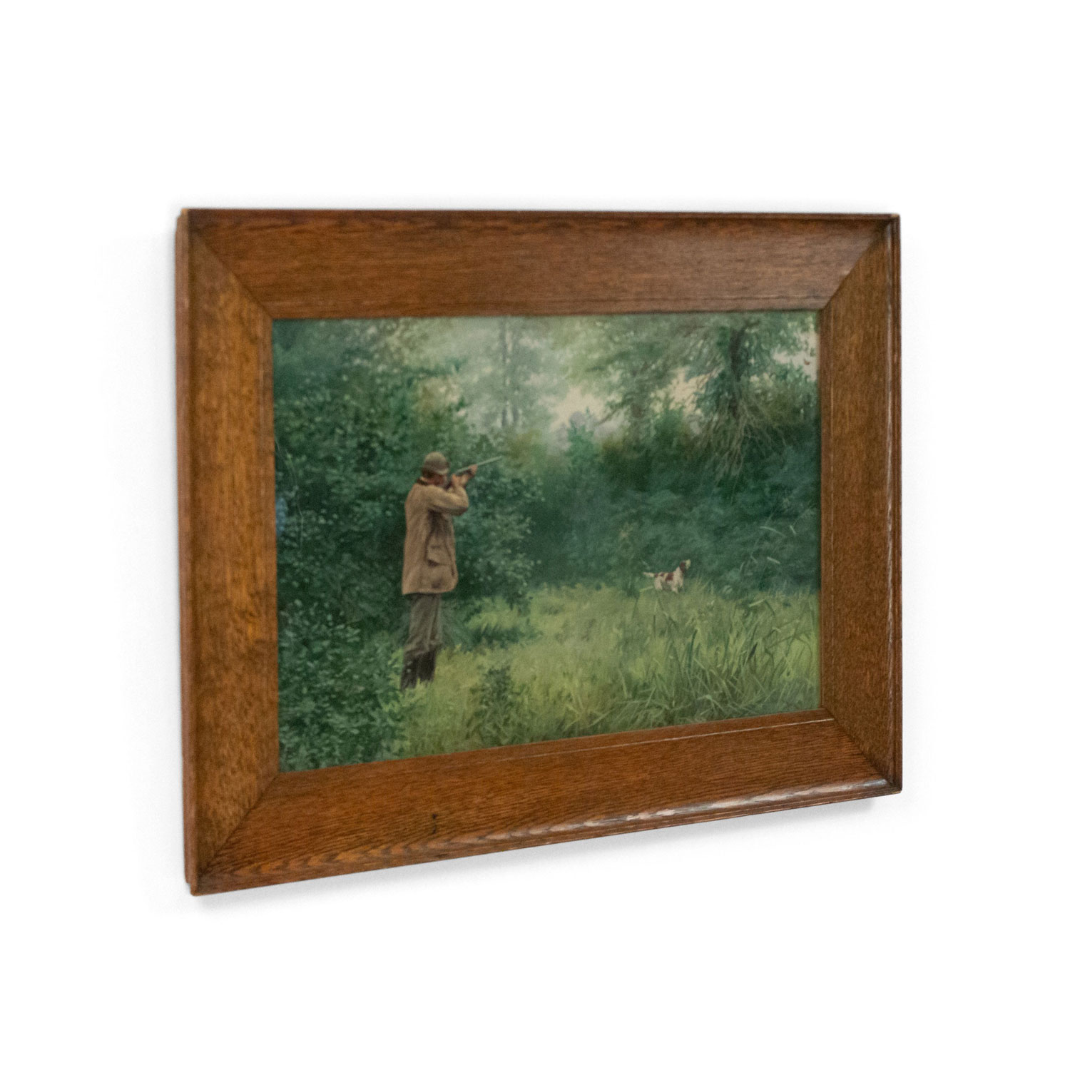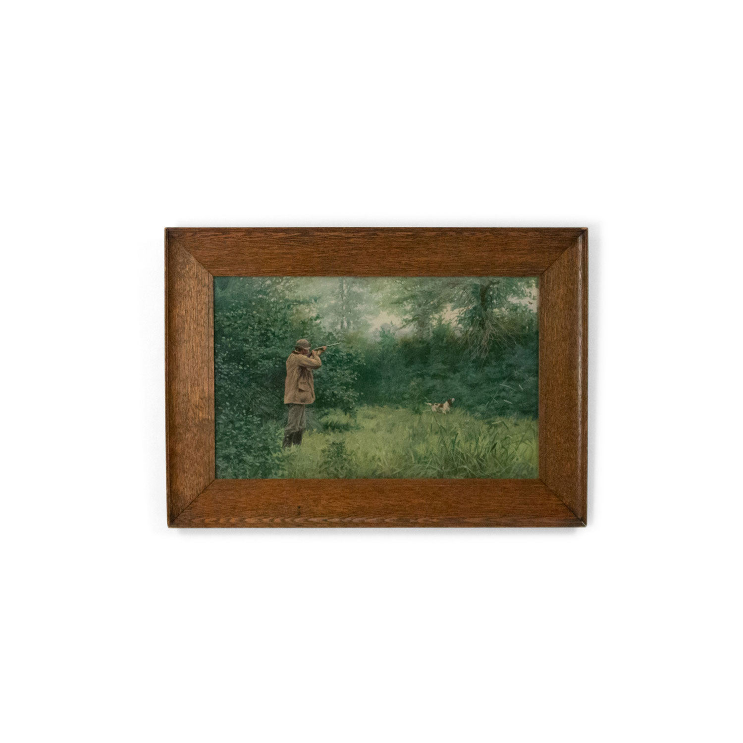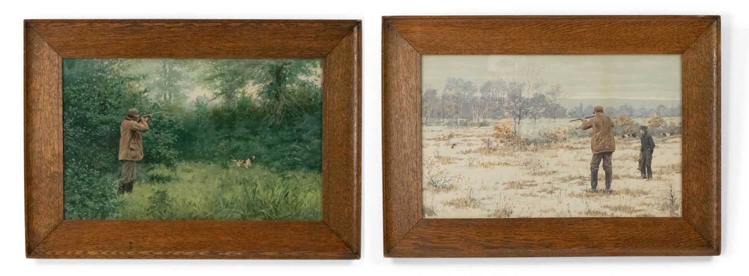 Pair of American Country Hunter Watercolor Lithographs