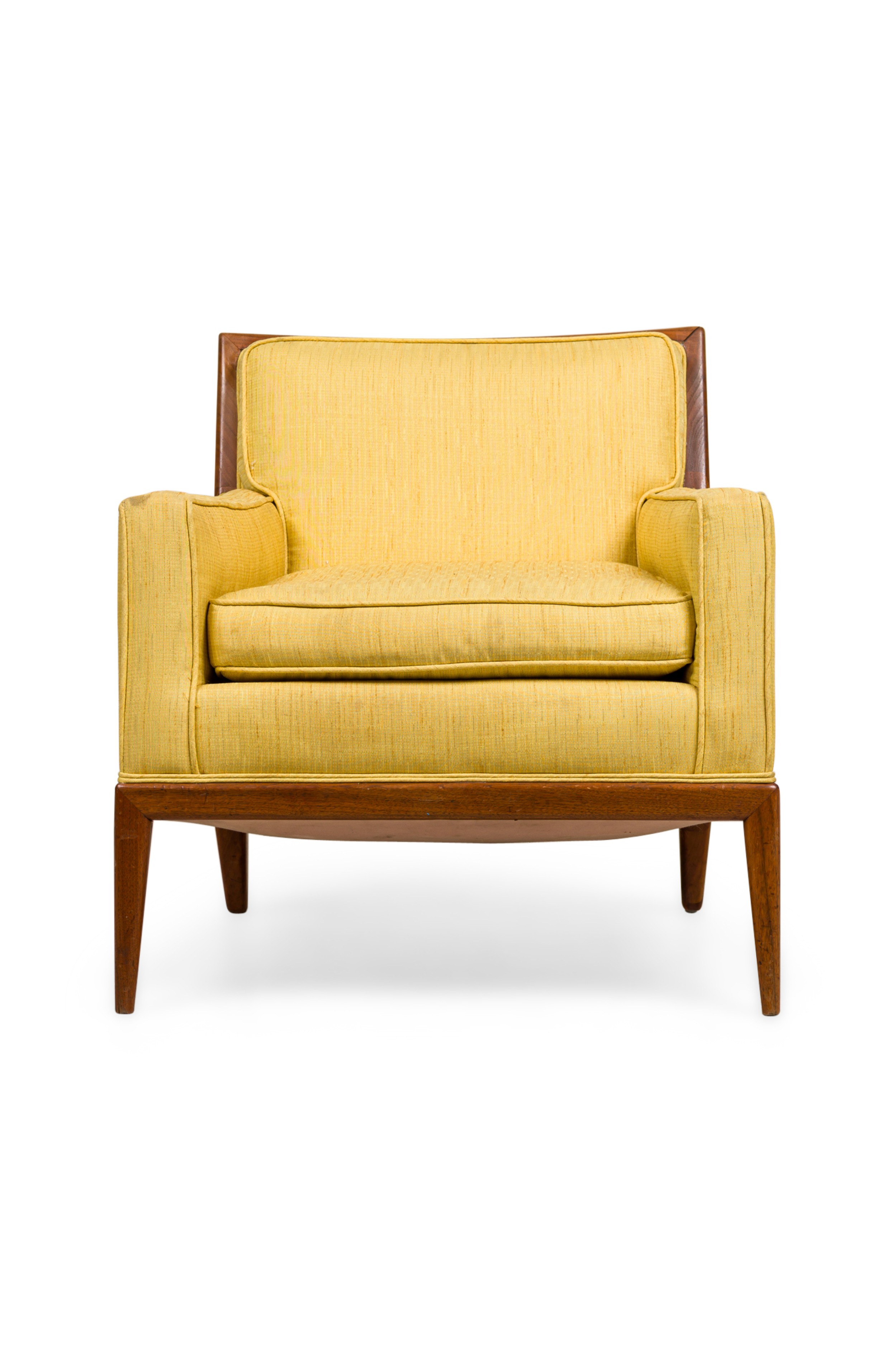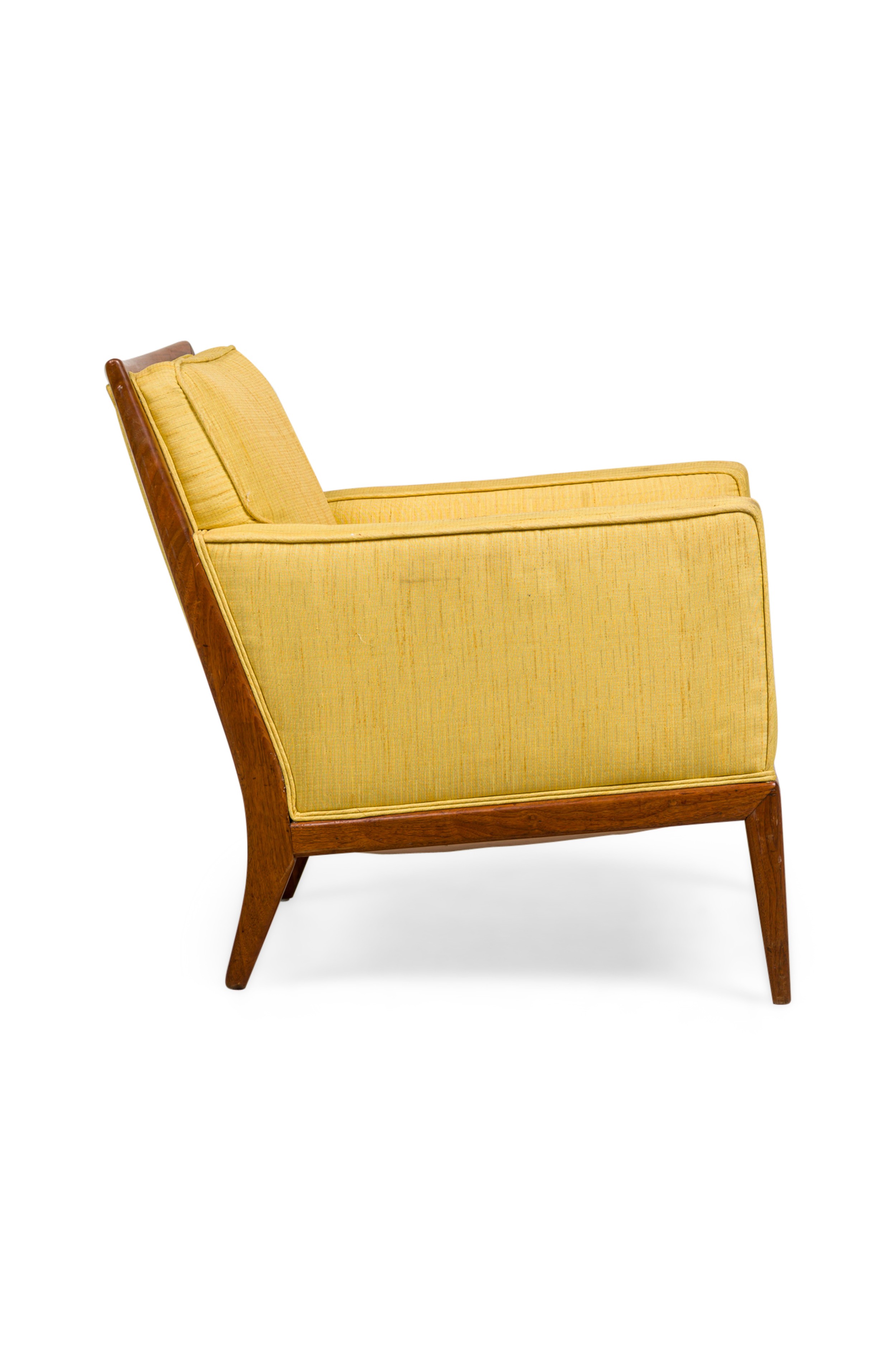 American Mid-Century Yellow Fabric Upholstered Lounge Chairs