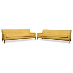 American Mid-Century Yellow Fabric Upholstered Sofas