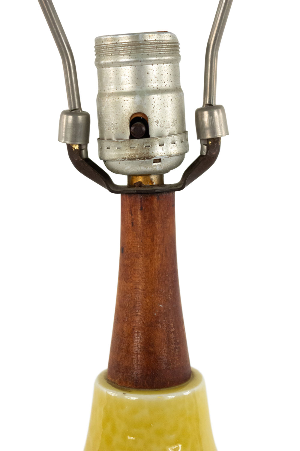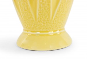 American Mid-Century yellow porcelain table lamp with tapered form having a shaped fluted design on a round base.