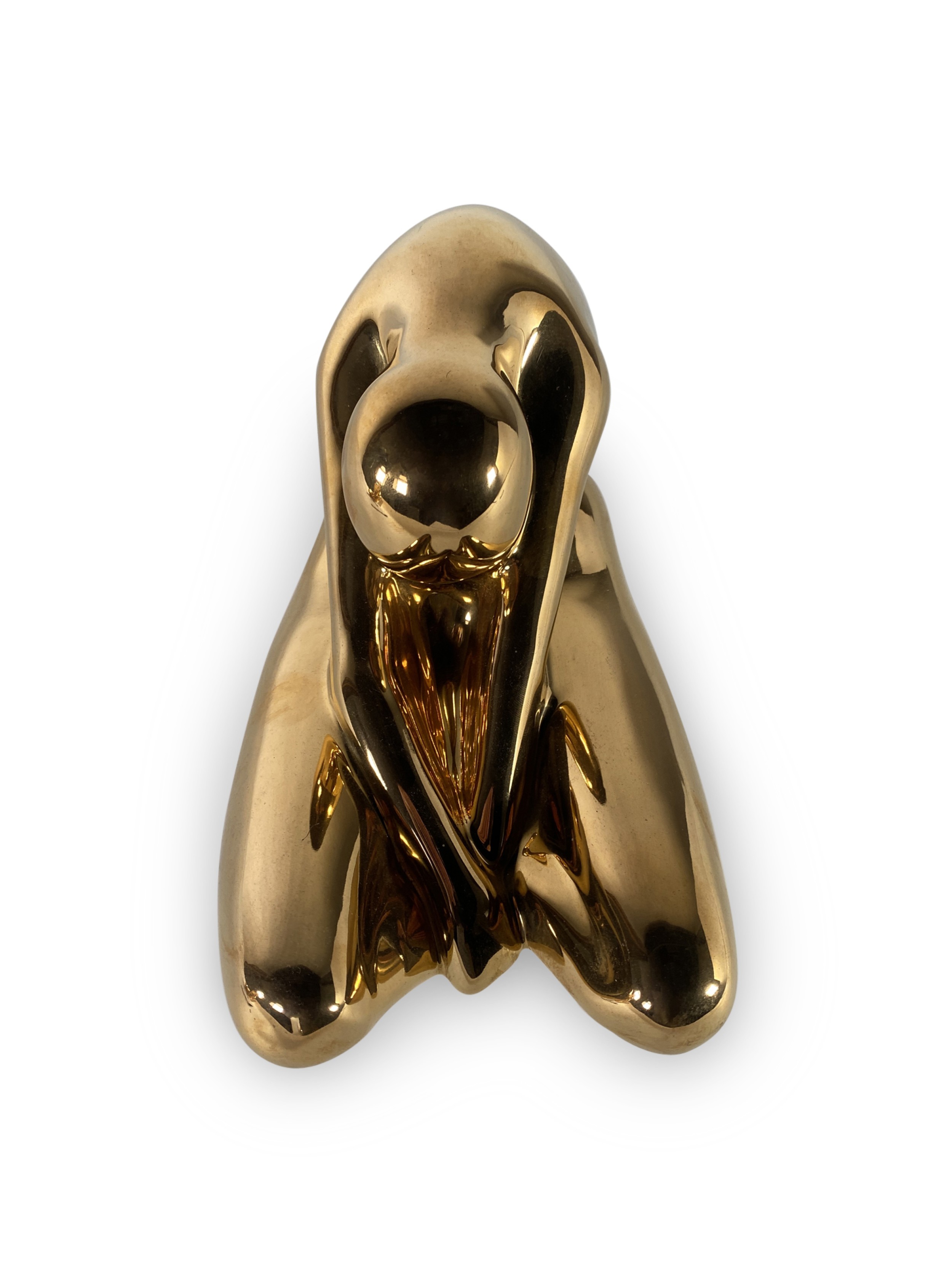 American Modern Ceramic Gold Glazed Figure in a Meditation Stretch by JARU).
