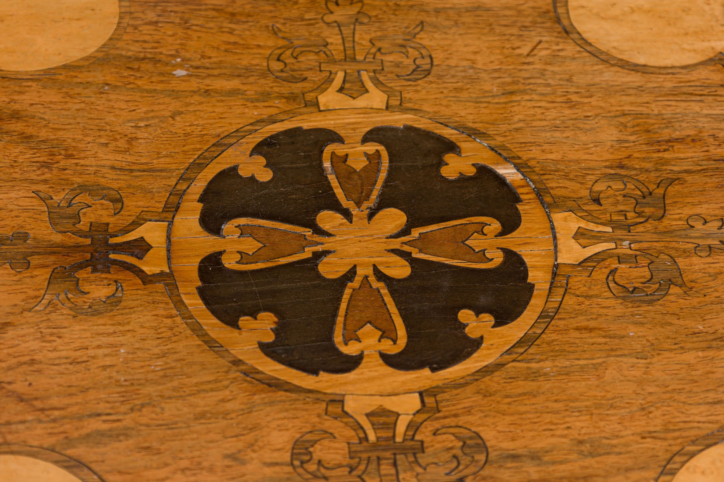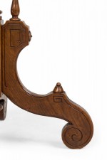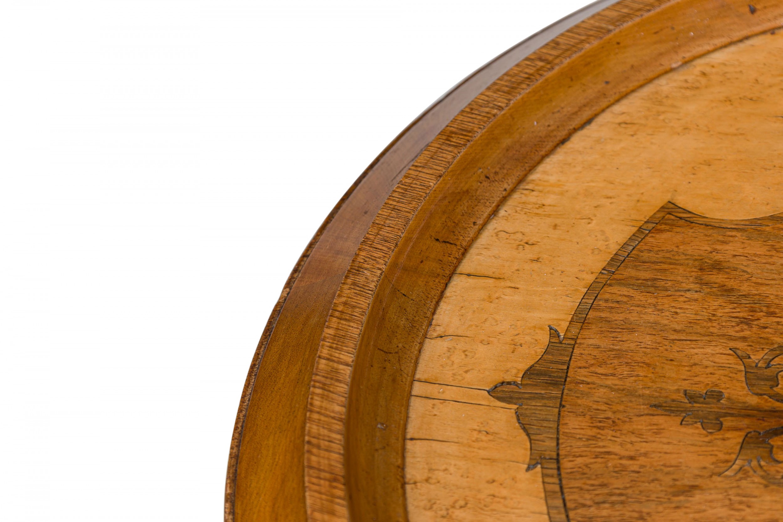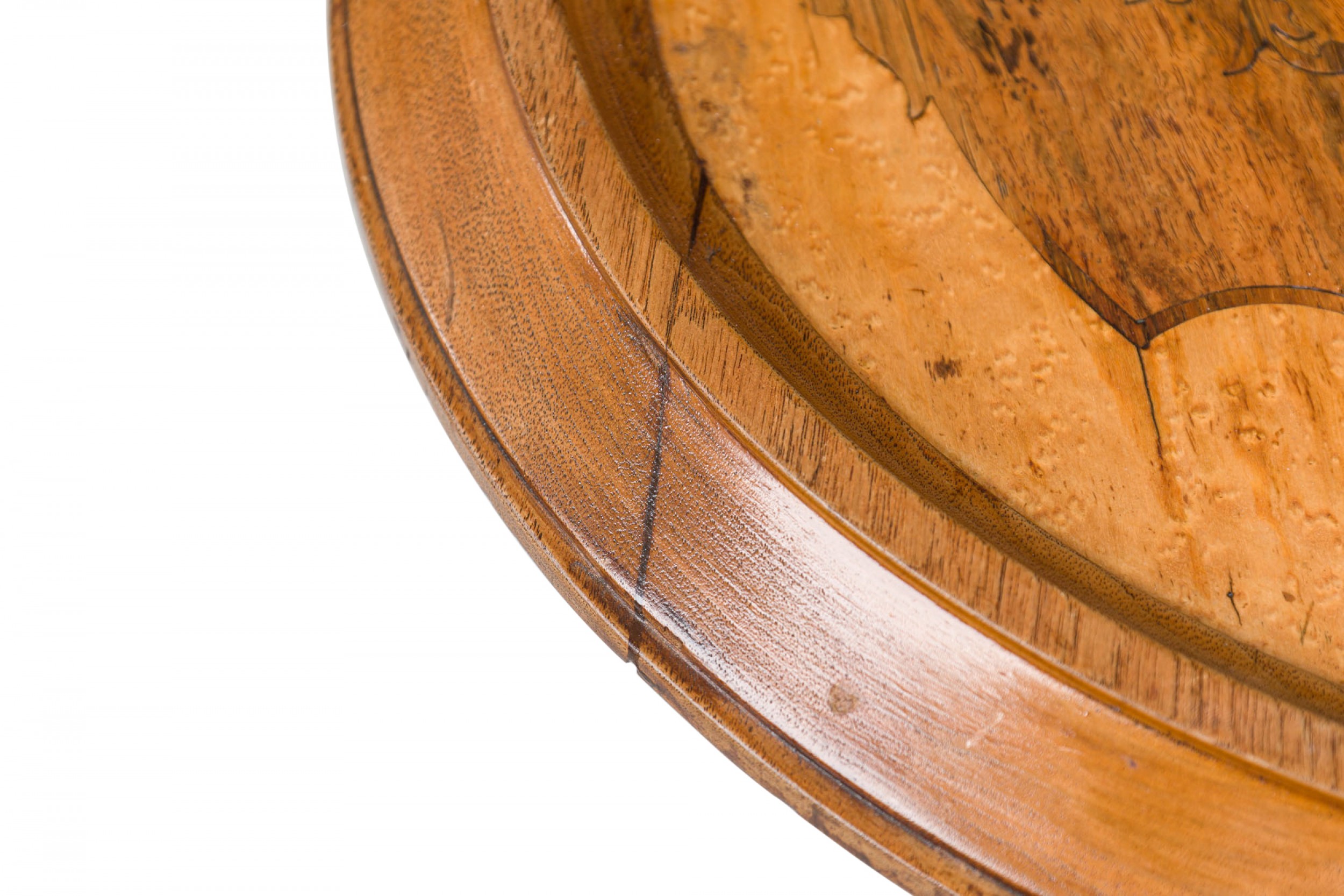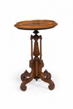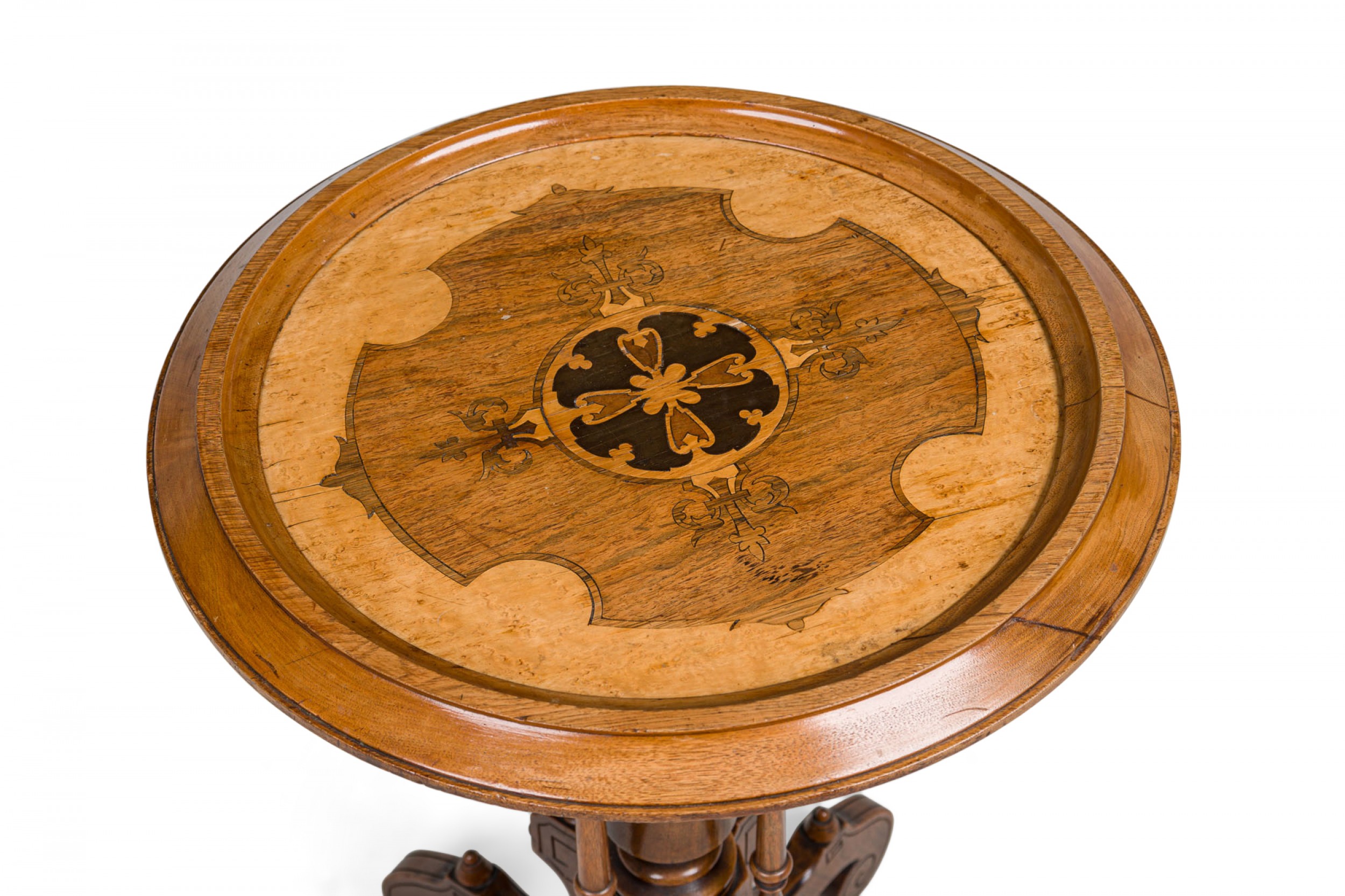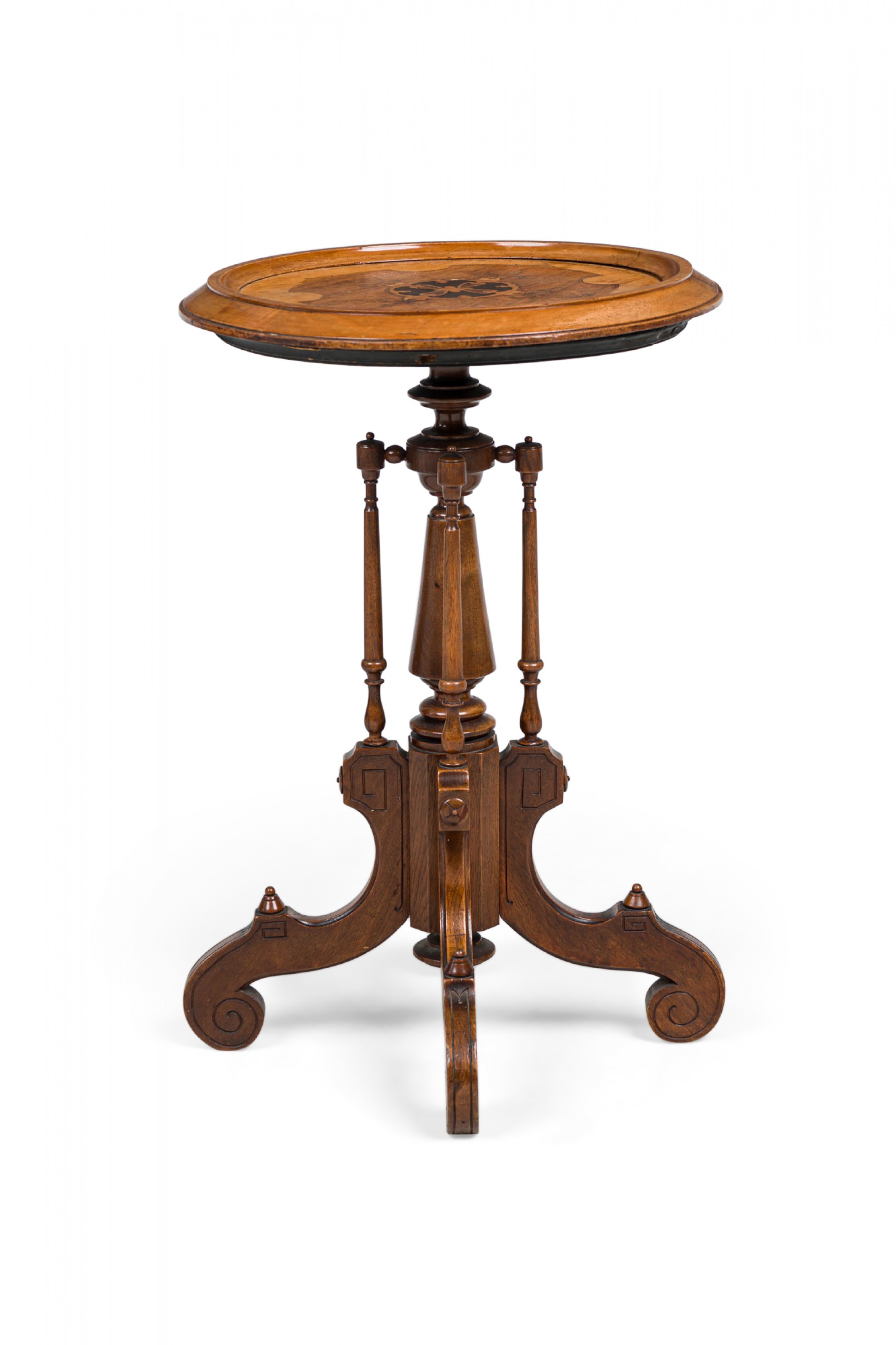 American Victorian Circular Carved Wood Plant Stand / Side Table with Inlaid Parquetry