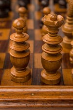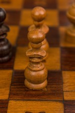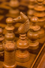Style: American, Art Deco Materials & Techniques: Carved, inlaid, inlay, pearl / mother-of-pearl, veneer, wood Category: Sporting/Gaming Condition: Some warping, chipping, missing some pieces of shell inlay. Good; Minor losses