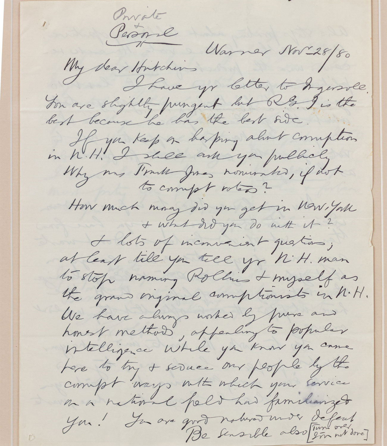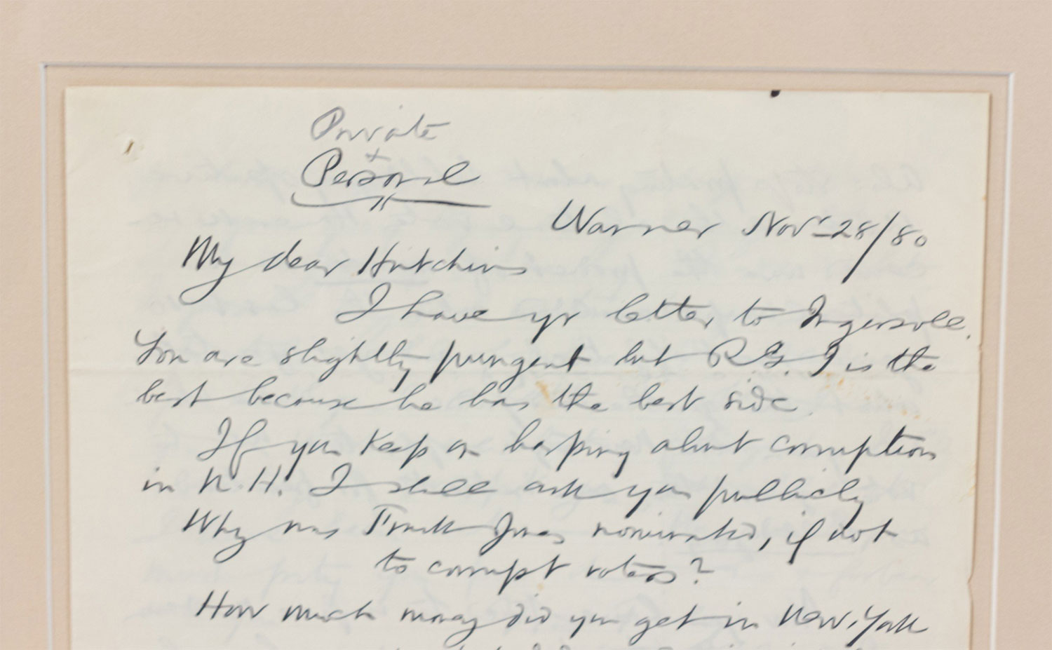 American Victorian famed letter from 1880 written by William E Chandler fir the Washington Post