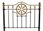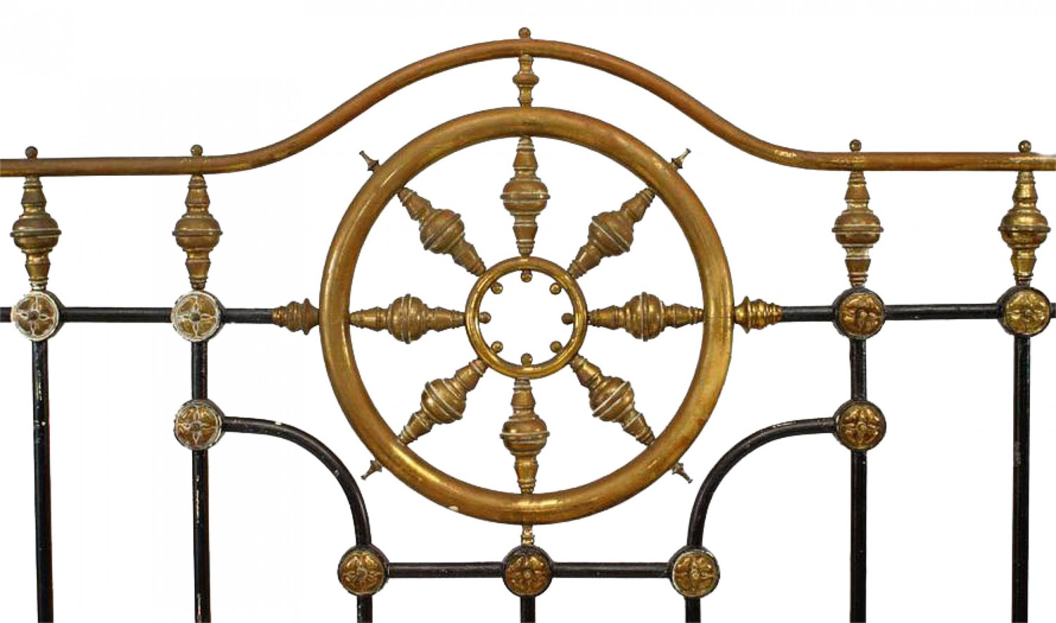 American Victorian black painted full size bed with brass wheel design (includes: headboard, footboard, rails)..