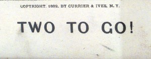 American Victorian (late 19th Century) ebonized-framed colored print of pool players titled "Two to Go" (Currier & Ives)