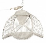 American Victorian white painted wicker chandelier with frosted glass globe shade.