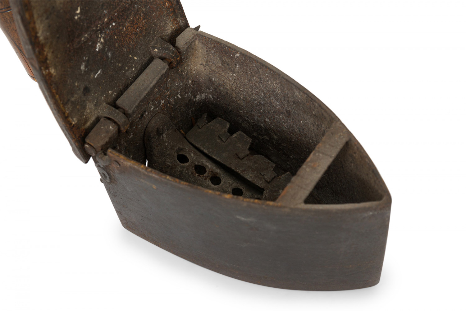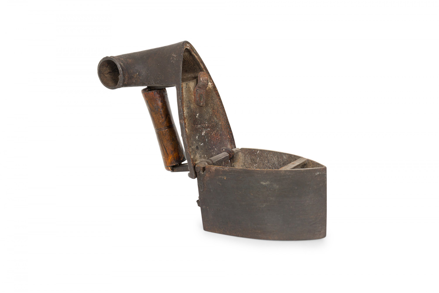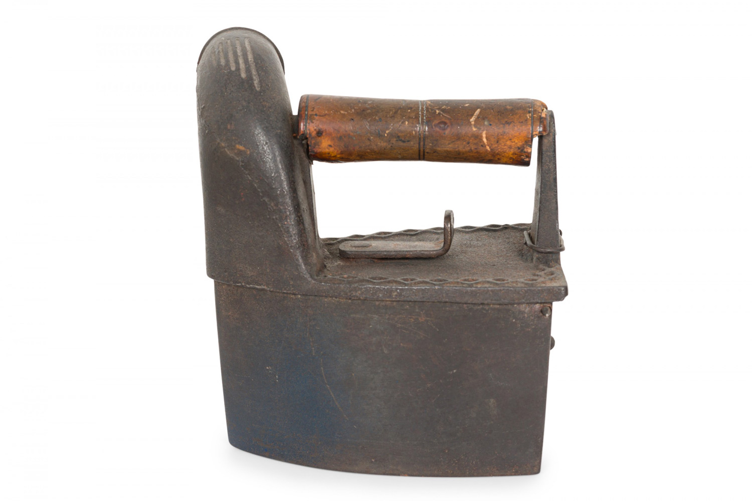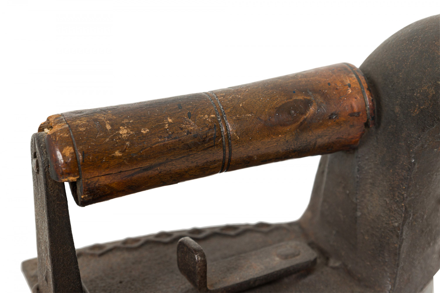 American Country-style (19th Century) wrought iron clothes iron with wood handle