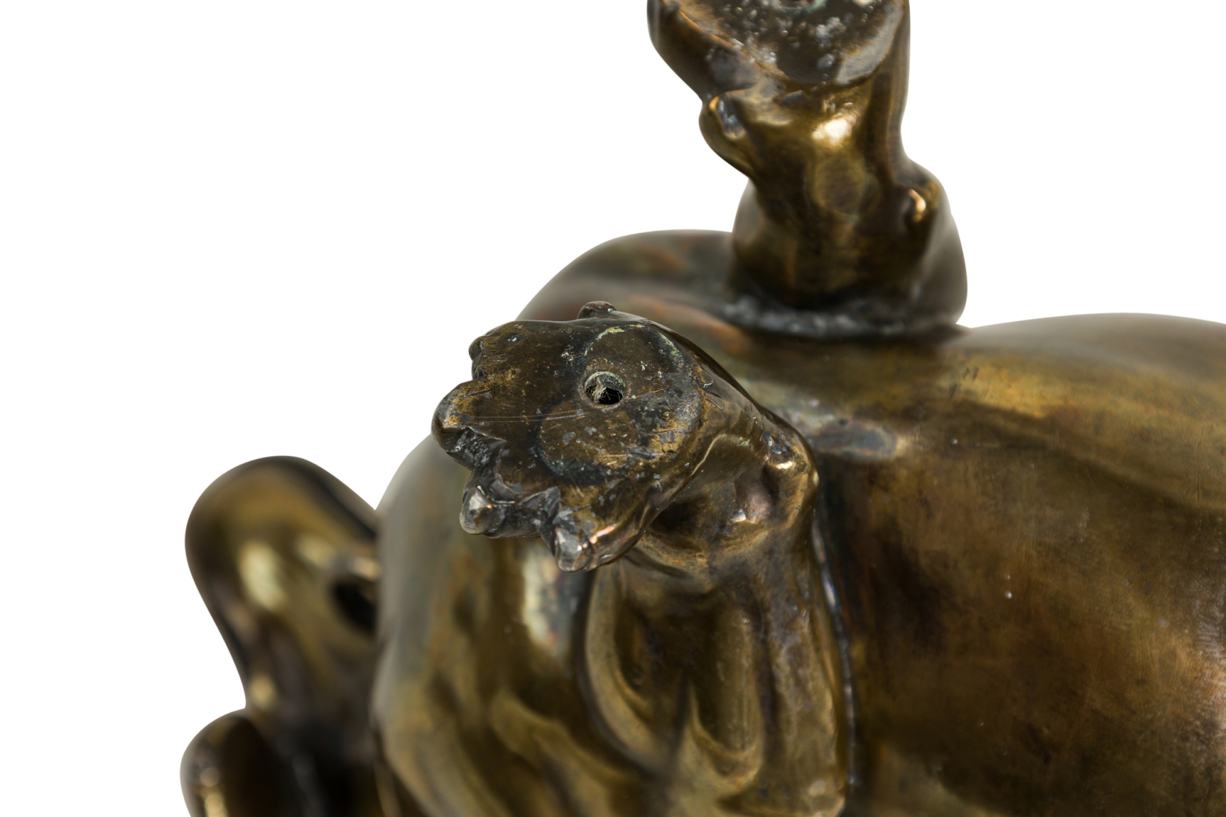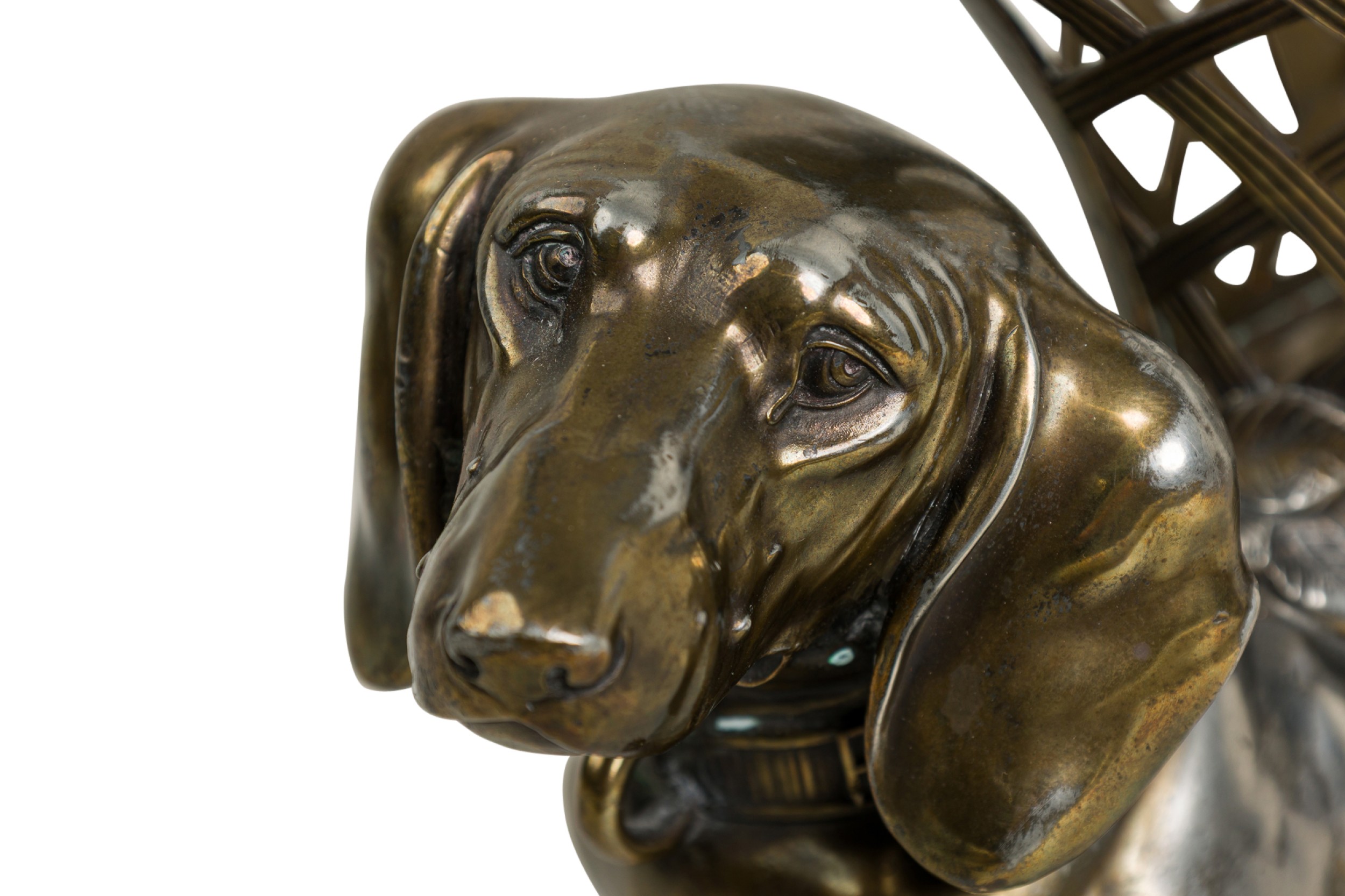 Art Nouveau Brass Dachsund Dog Figure Carrying a Basket