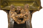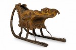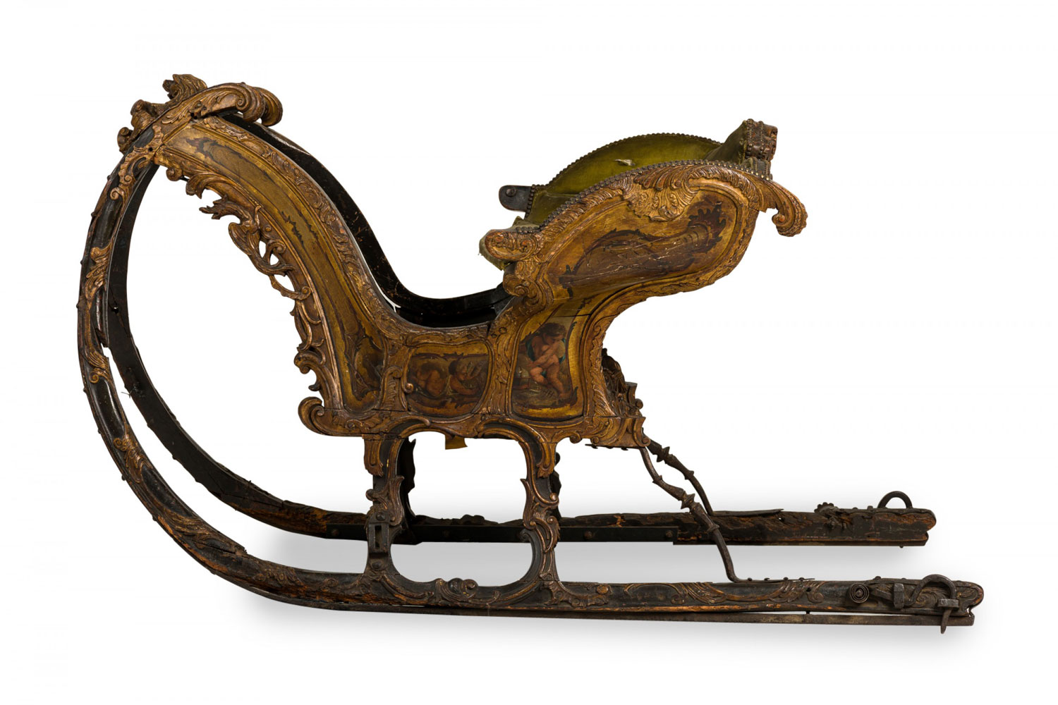 Russian (18/19th Cent) large painted and gilt trimmed carved sleigh with green velvet seat