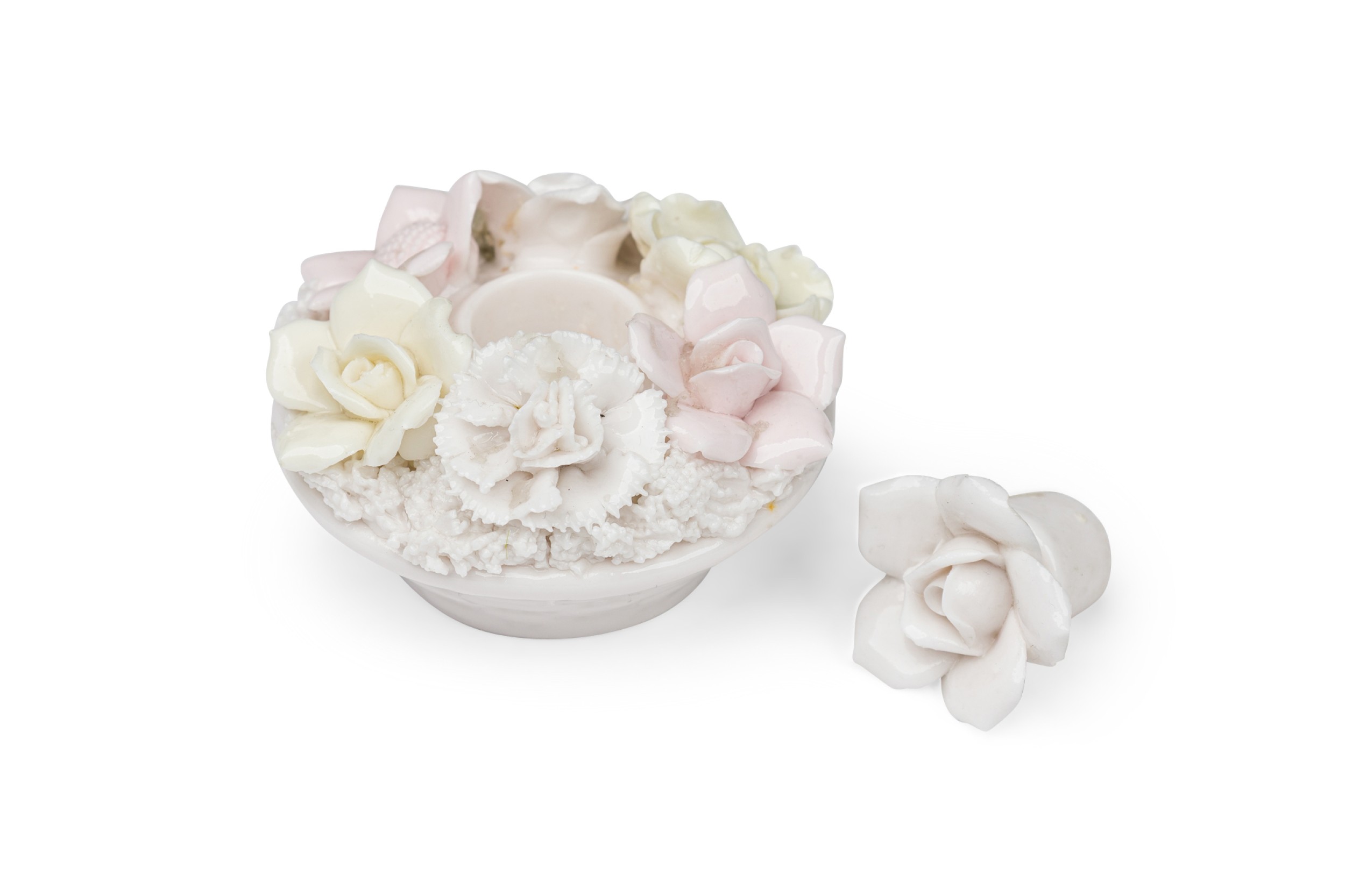 Japanese Mid-Century style flower basket candle holder with a secret compartment for the candle concealed with a floral lid (ARDALT LENWILE, with number: 6237)