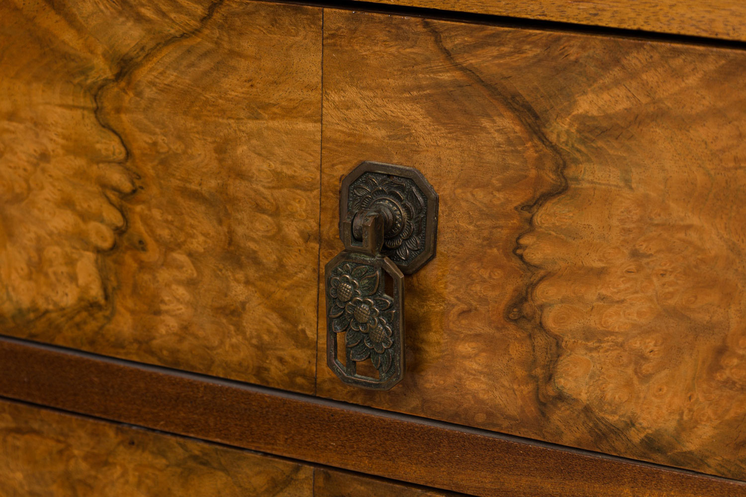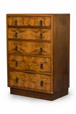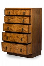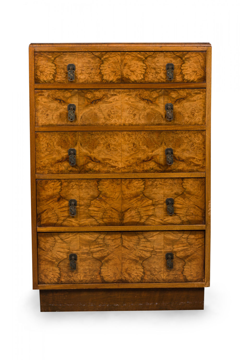 Art Deco Burl Veneer 5-Drawer Tall Chest