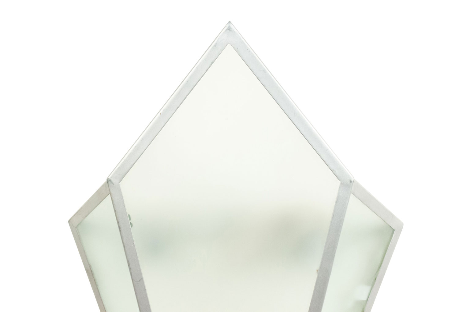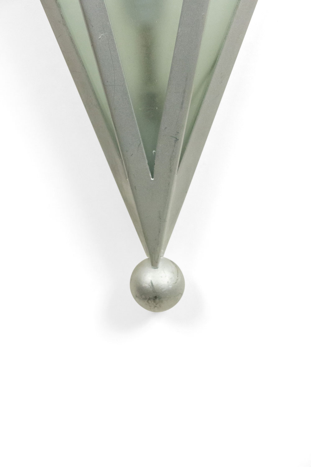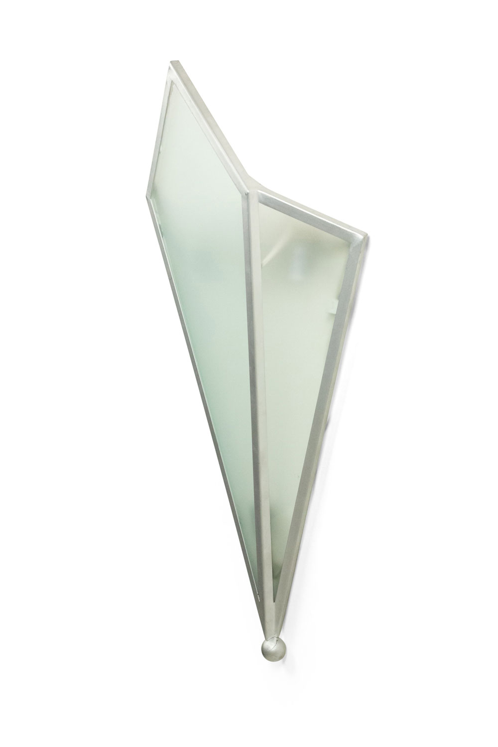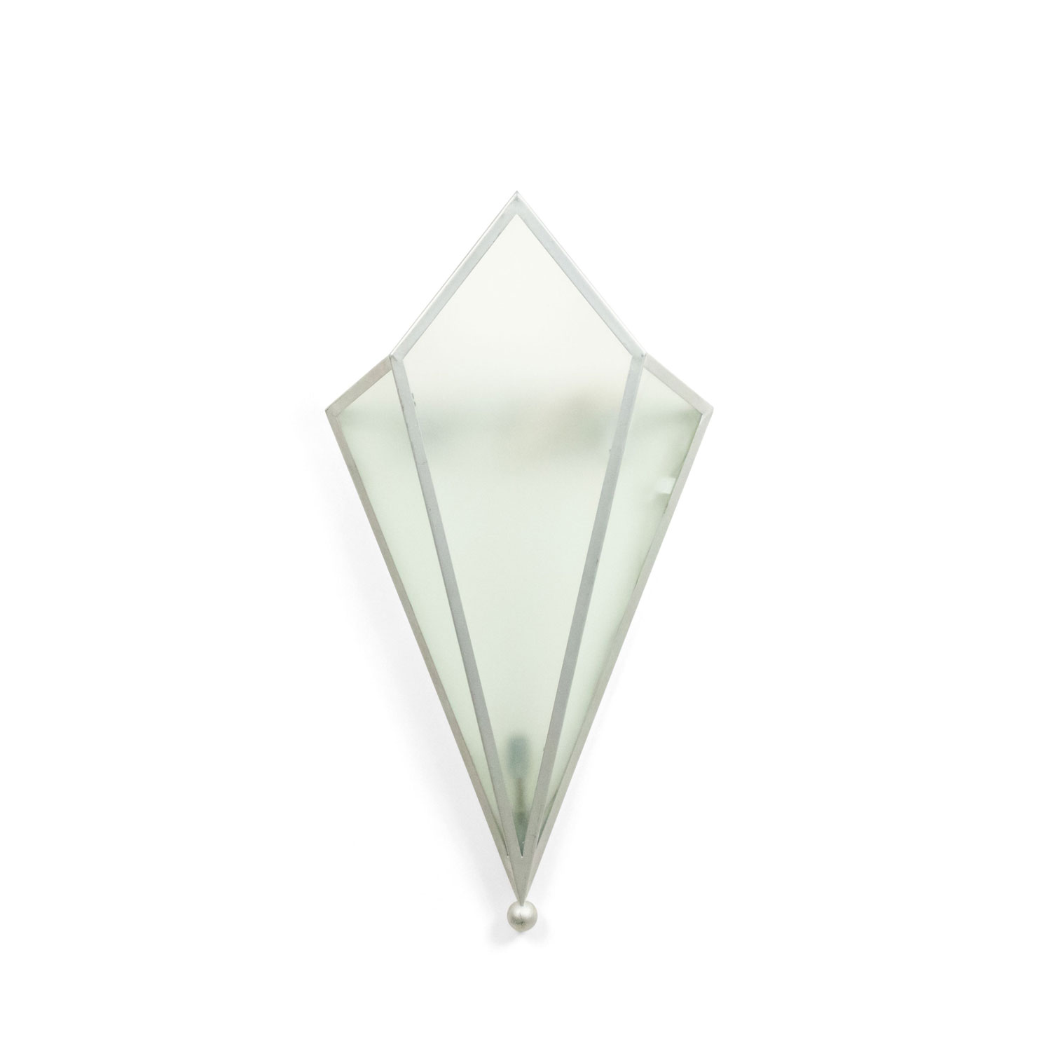 4 Art Deco-Style wall sconces with 3 geometric shaped frosted glass panels set in a silver painted metal frame. (PRICED EACH).