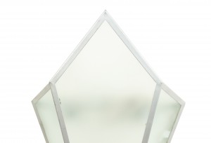 4 Art Deco-Style wall sconces with 3 geometric shaped frosted glass panels set in a silver painted metal frame. (PRICED EACH)