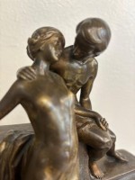 Art Deco bronze group of standing semi nude lady and seated man embracing