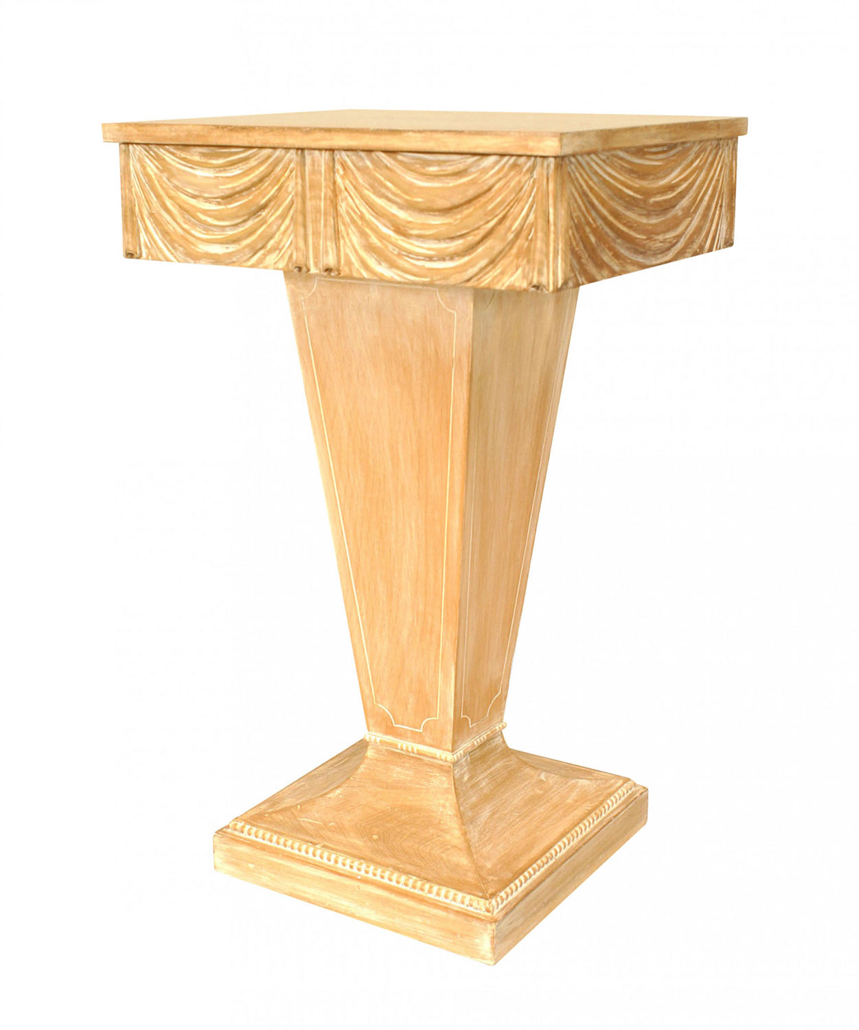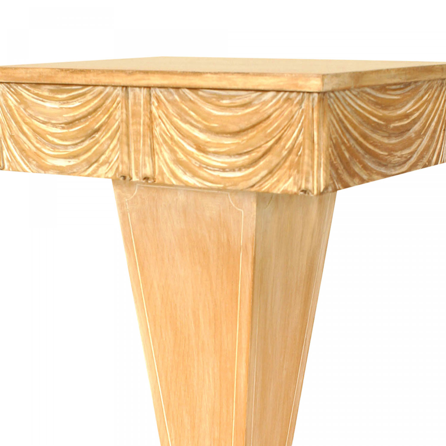 PAIR of Art Moderne stripped end tables with a carved swag apron and drawer supported on a tapered pedestal base. (GROSFELD HOUSE) (PRICED AS PAIR).