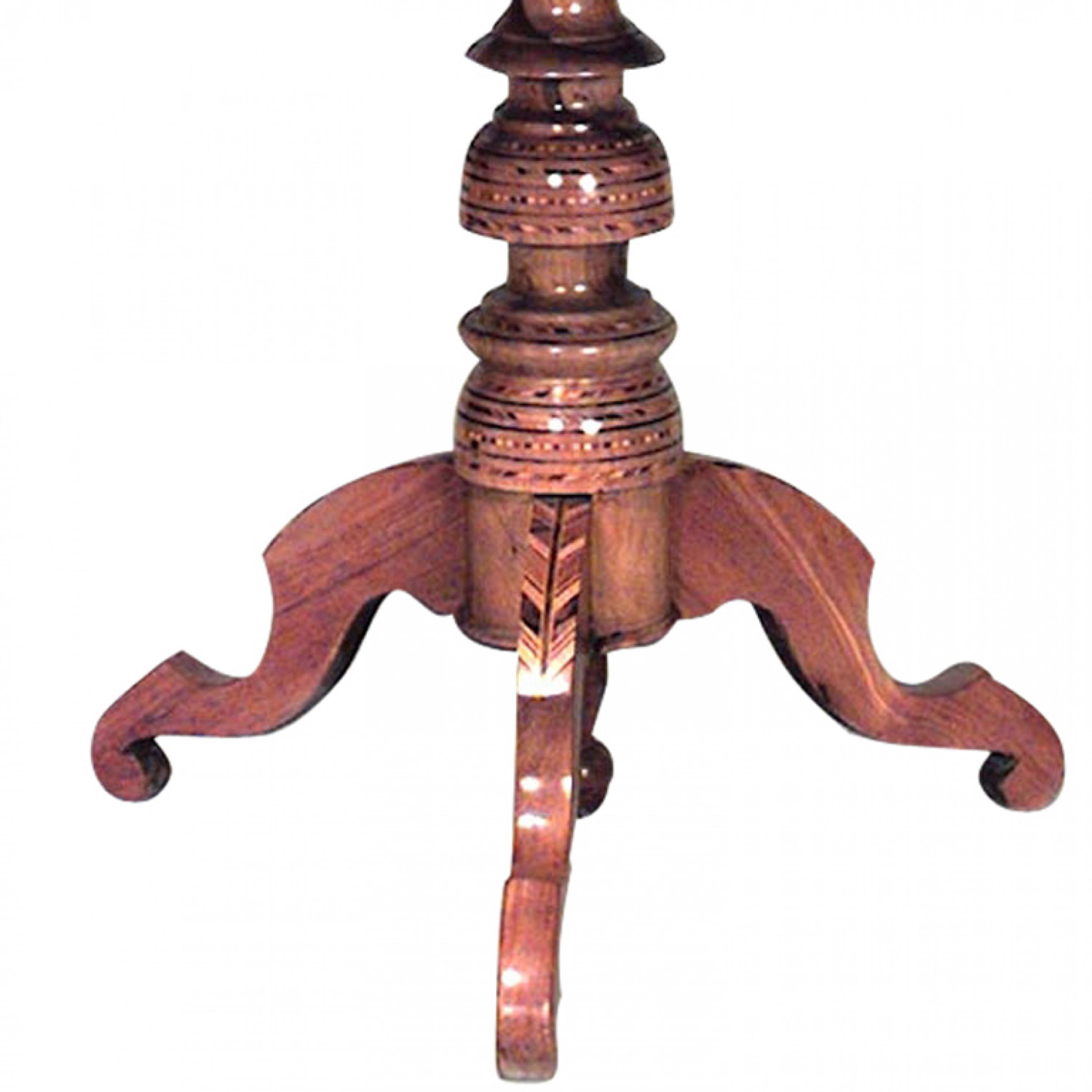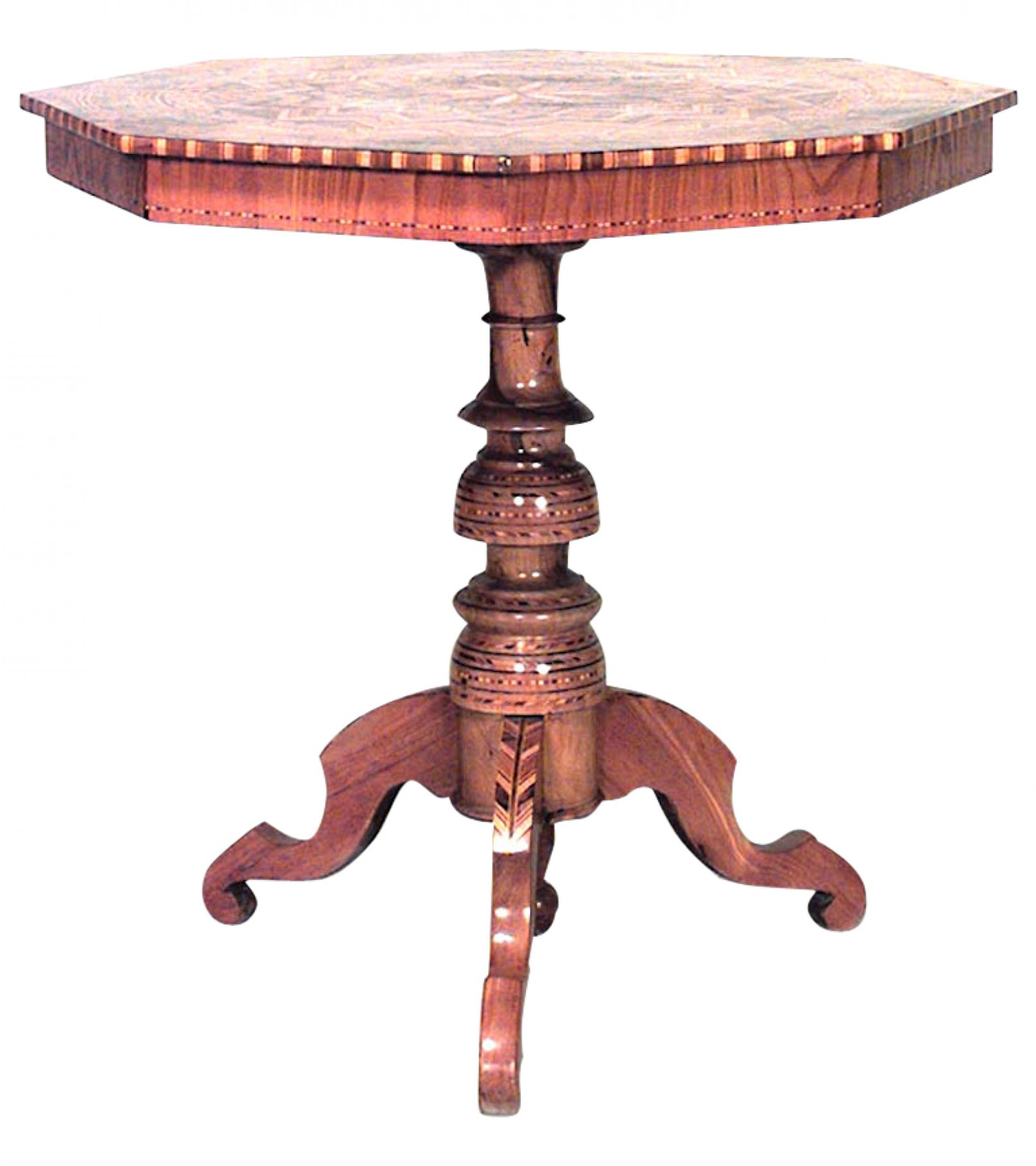 Austrian Biedermeier-style (19th Century) maple inlaid pedestal base end table with octagonal top..