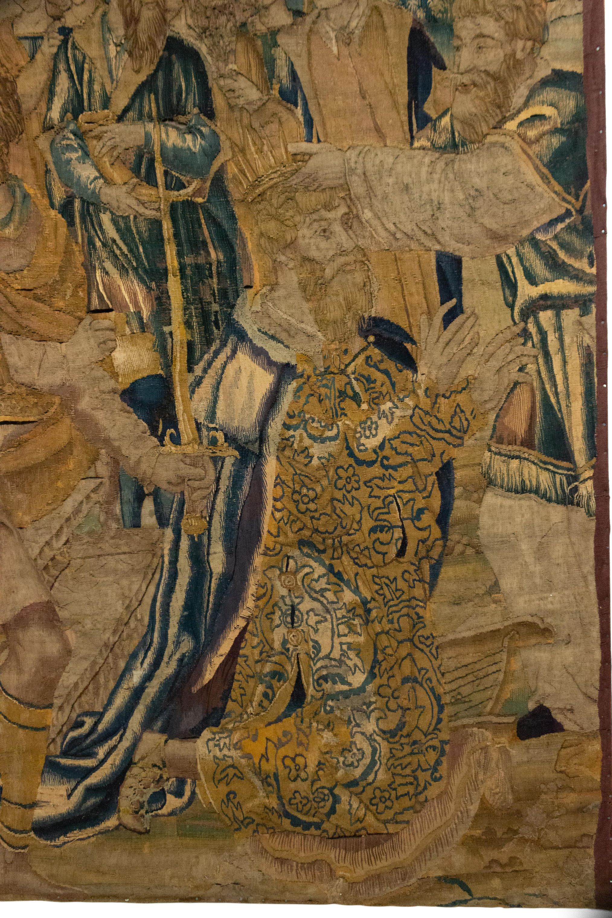 Belgian 17th Century Woven Tapestry of Kneeling King