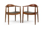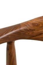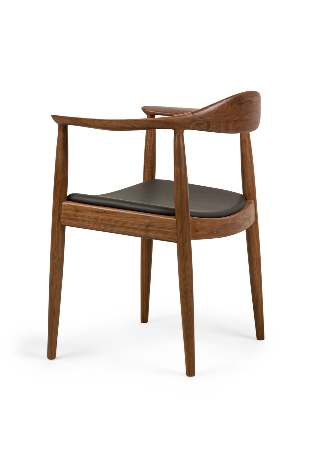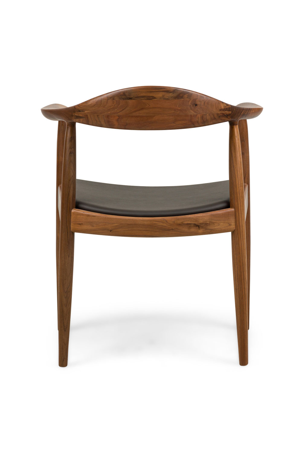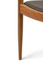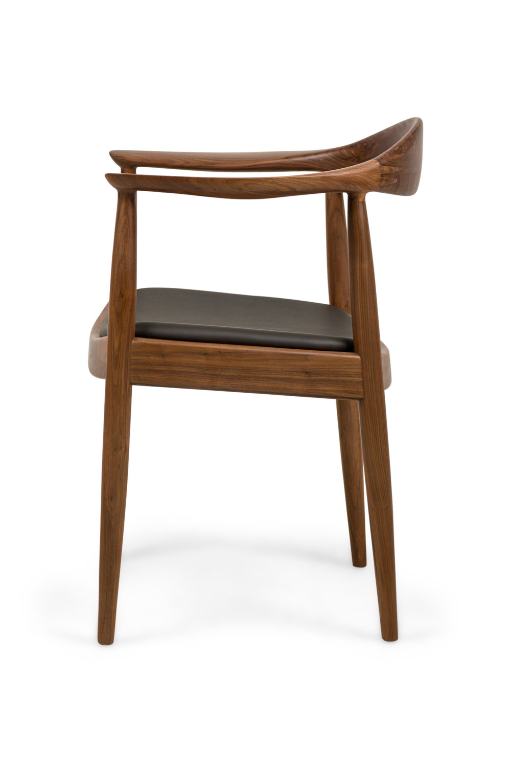 12 "BRUNO" Mid-Century / Danish-style dining chairs constructed of sustainably harvested FSC-certified American walnut, featuring classic Scandinavian contours and dark olive leather upholstered seat (PRICED EACH)..
