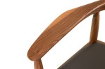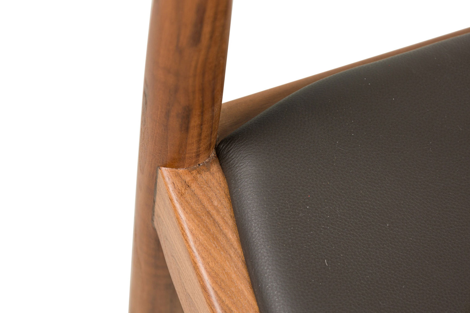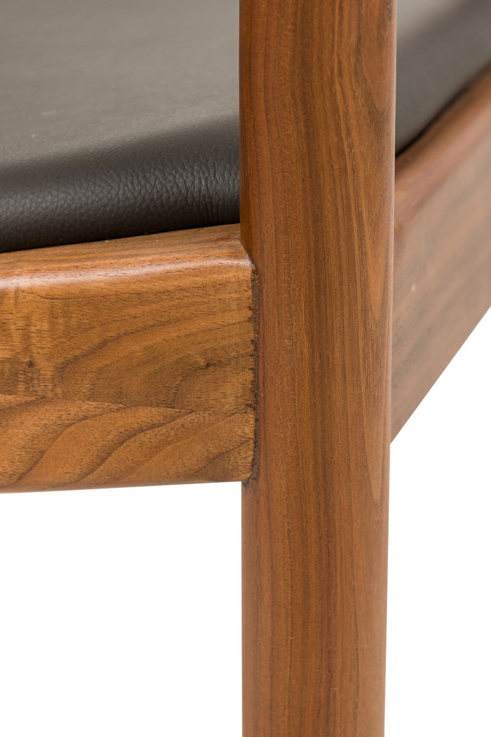Style: Mid-Century Materials & Techniques: Leather, walnut, wood Category: Seating Good; Wear consistent with age and use