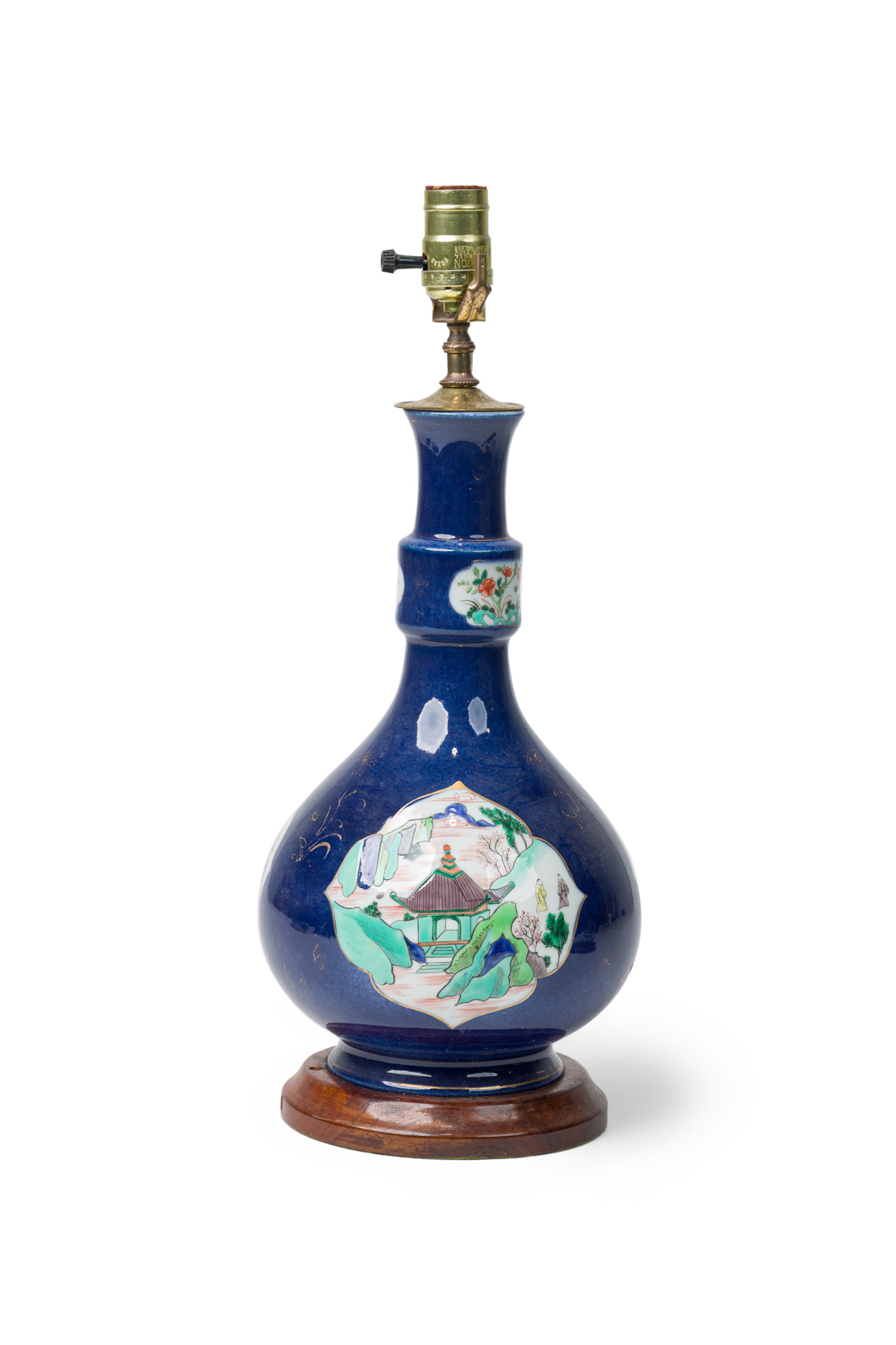 Chinese Landscape and Floral Motif Cobalt Blue Porcelain Table Lamp
