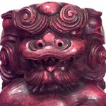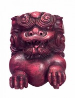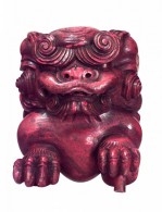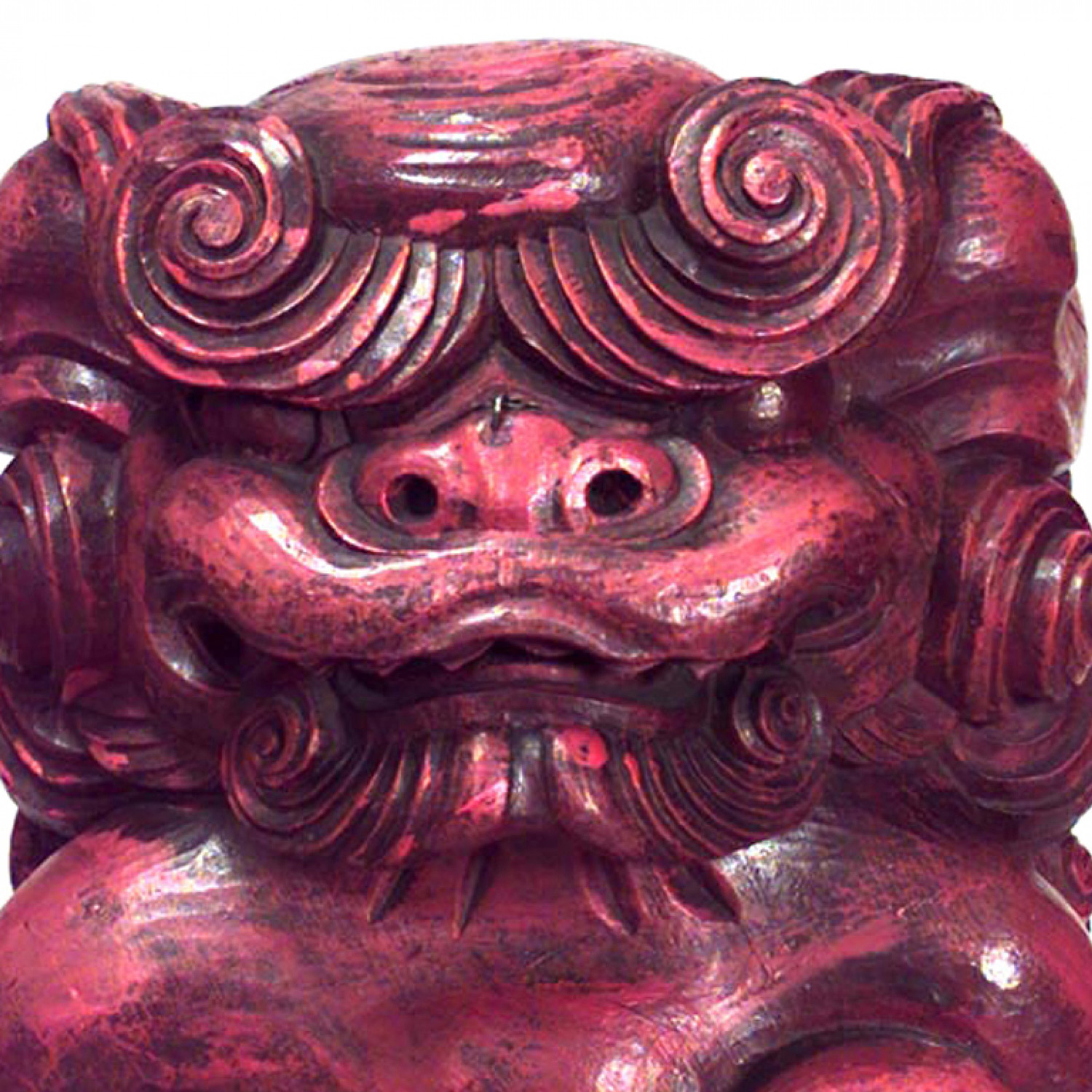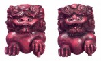PAIR of Asian Chinese style (19th Cent) red lacquered carved figures of squatting foo dogs