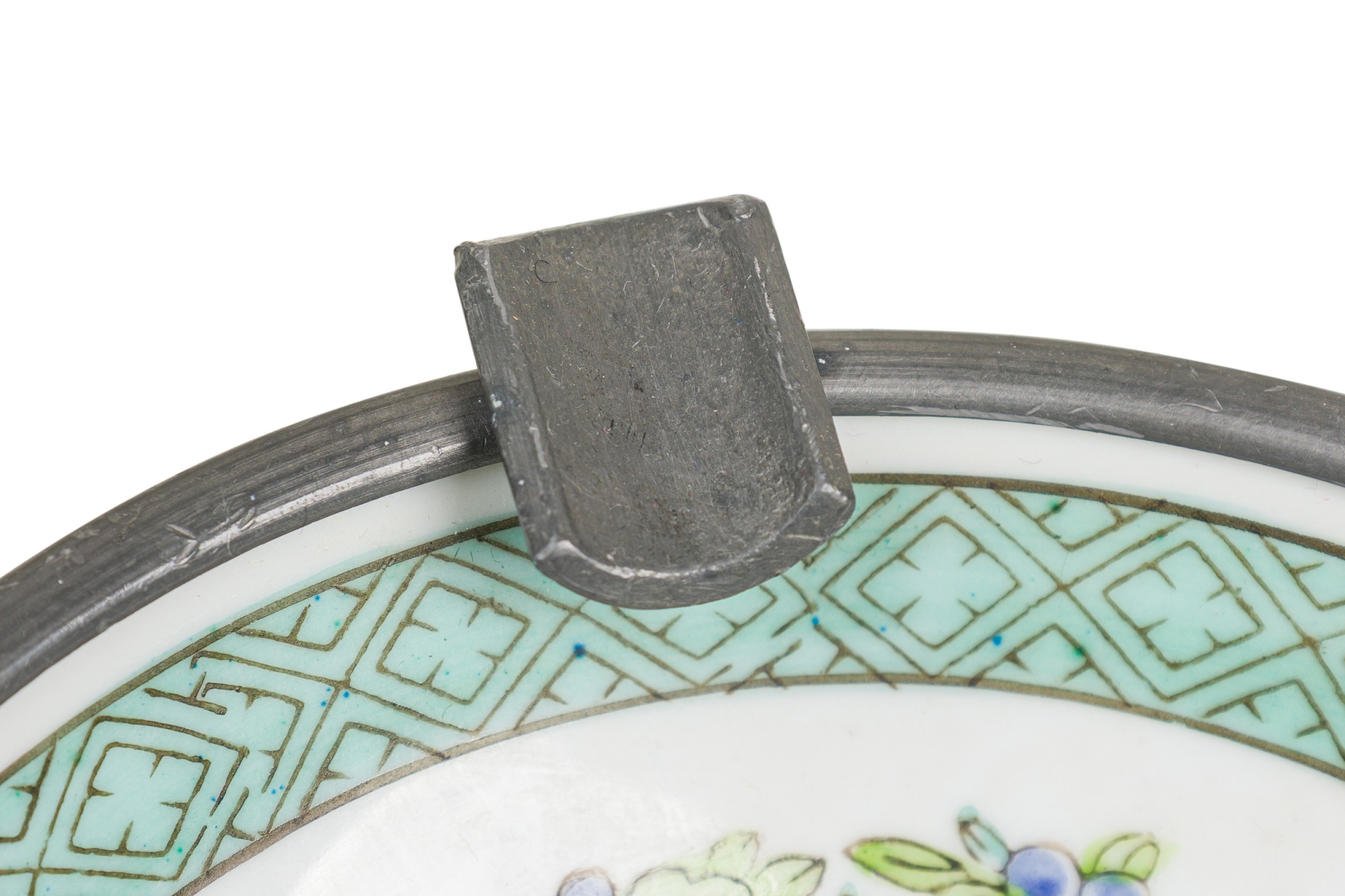 Style: Asian, Mid-Century Materials & Techniques: Pewter, porcelain Category: Accessories/Décor/Bric-a-Brac, Bar