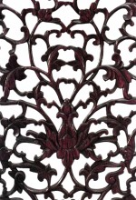 Style: Asian Materials & Techniques: Carved, teak, velvet Category: Accessories/Décor/Bric-a-Brac, Screens Good; Wear consistent with age and use