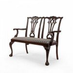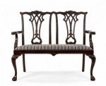 Chippendale Style Mahogany Loveseat with Striped Upholstery