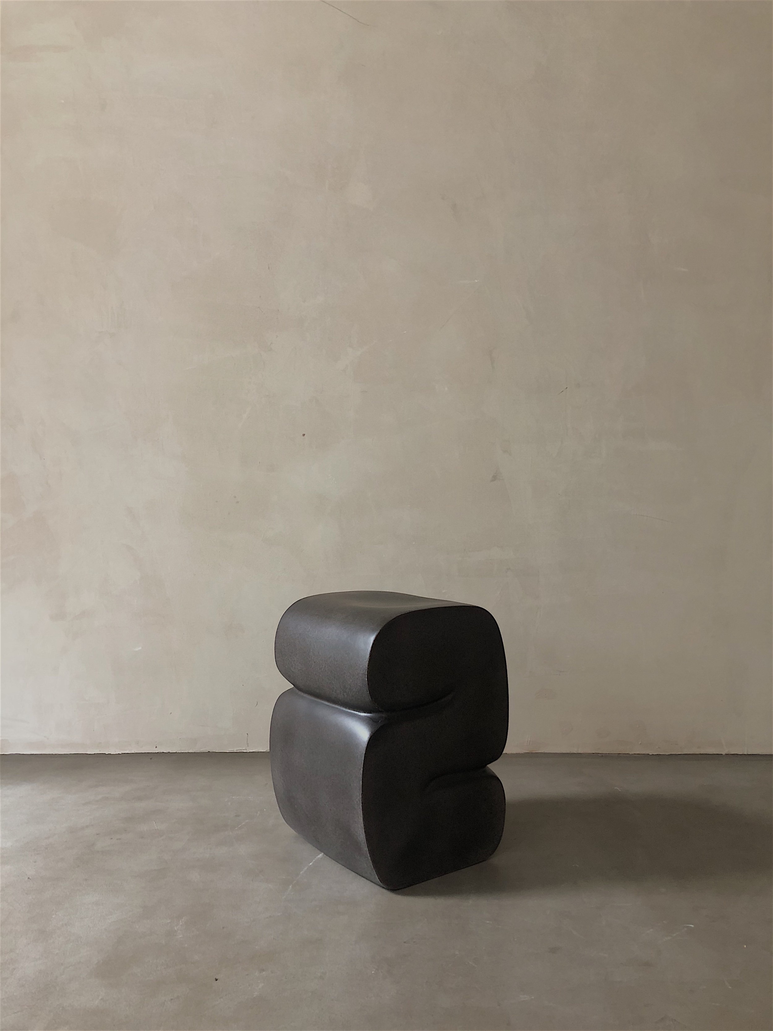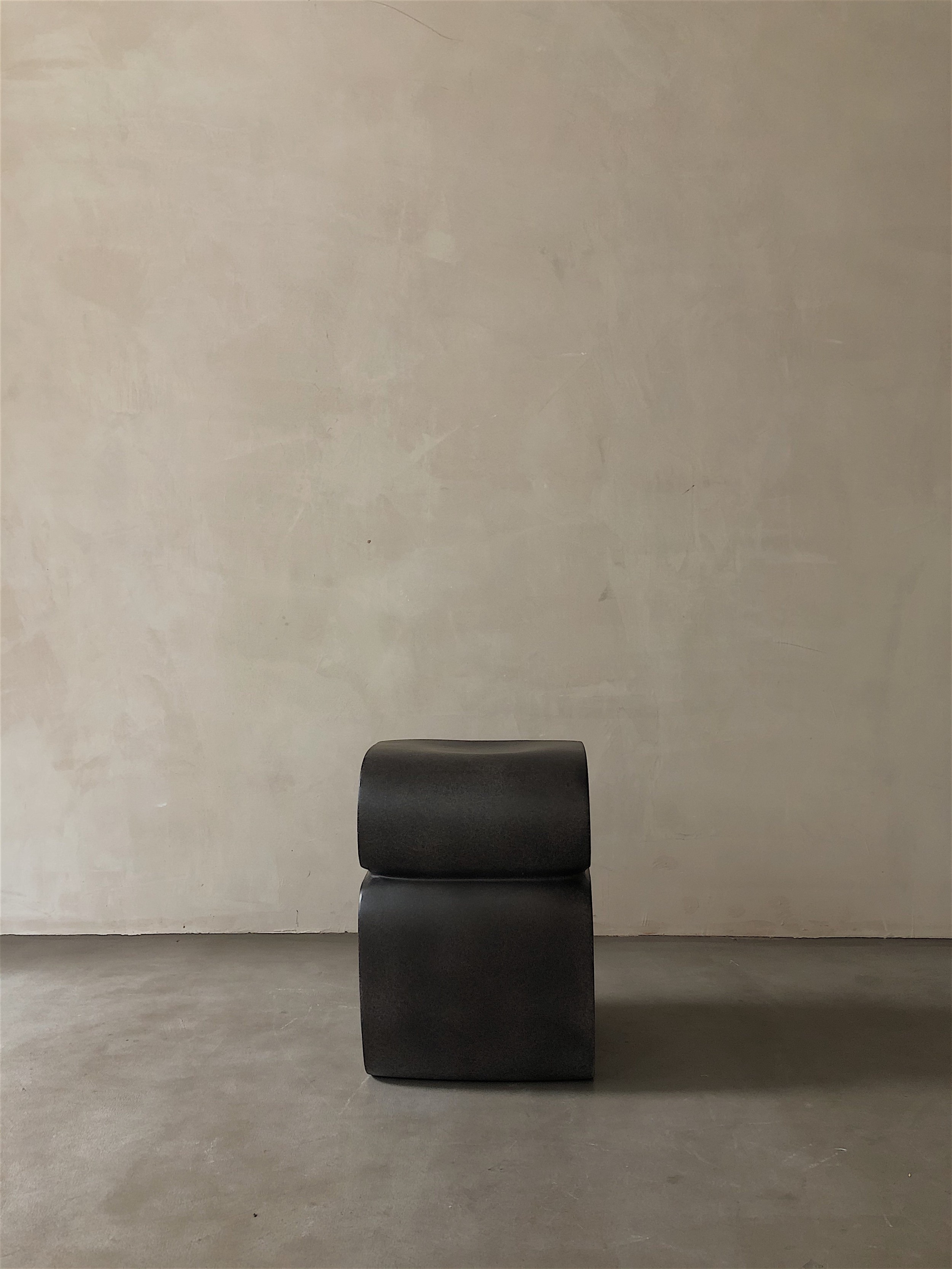 Contemporary coffee brown "S" shaped fiberglass molded stool (KAR STUDIO)