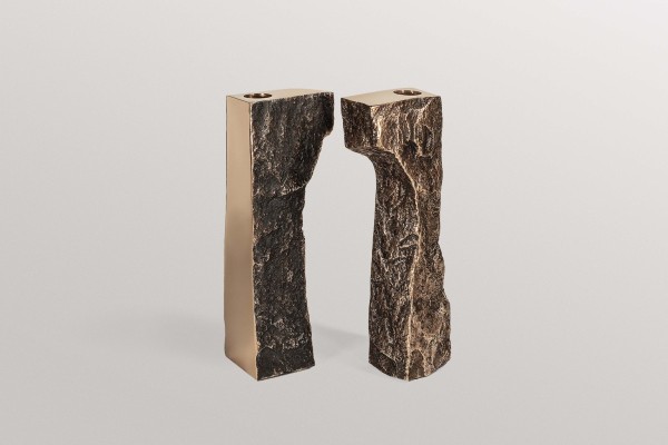 Contemporary candlestick featuring hand sculpted ceramic body inspired by tectonic structures and geological phenomena in nature (NICLAS WOLF).