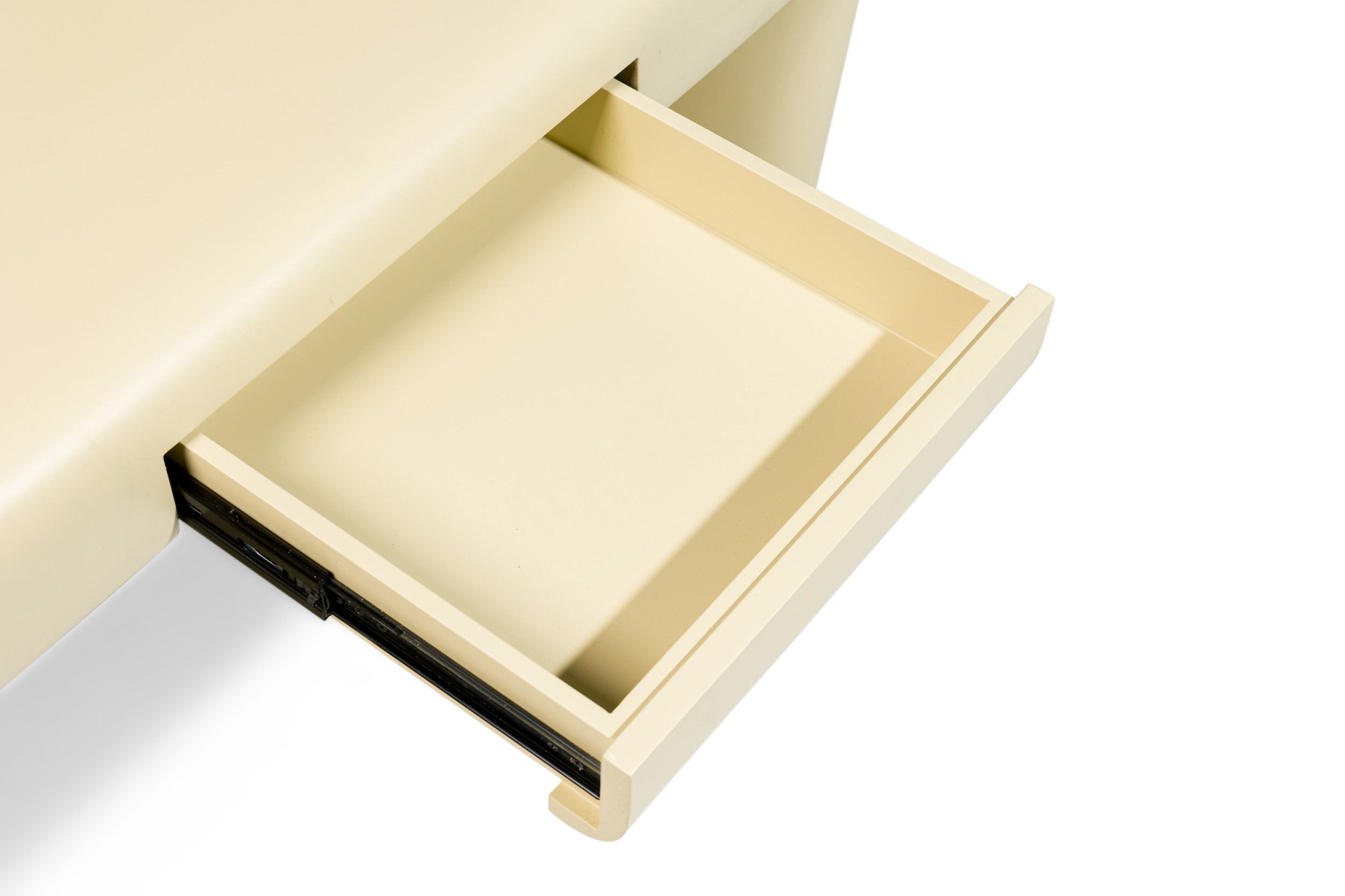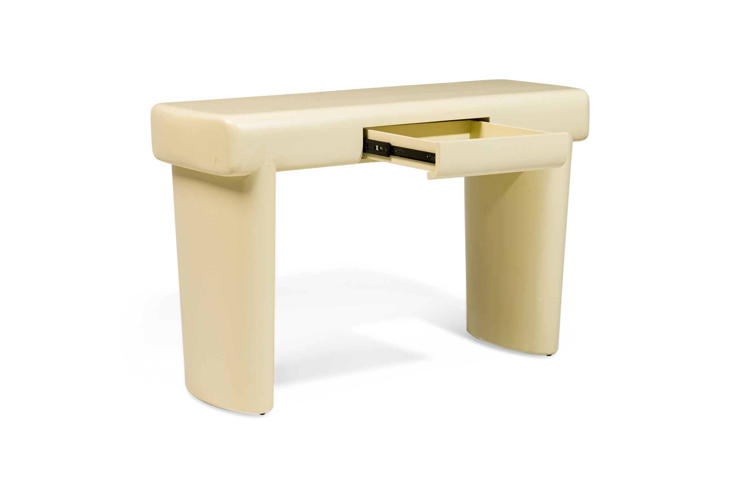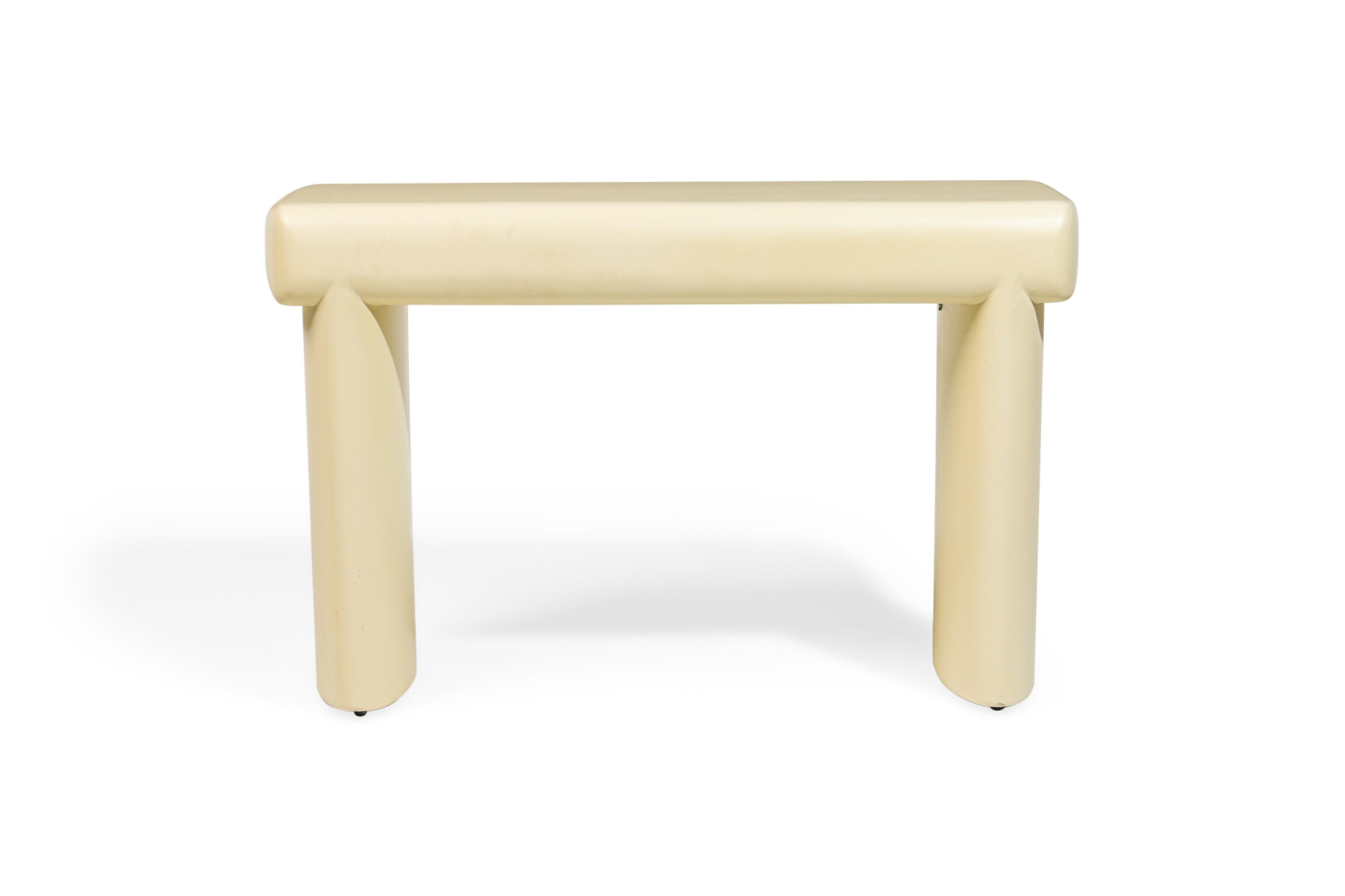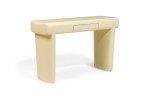 Contemporary ivory wood desk with a round edged cuboid top ending on two legs (KAR STUDIO)