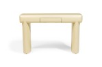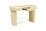 Contemporary ivory wood desk with a round edged cuboid top ending on two legs (KAR STUDIO).